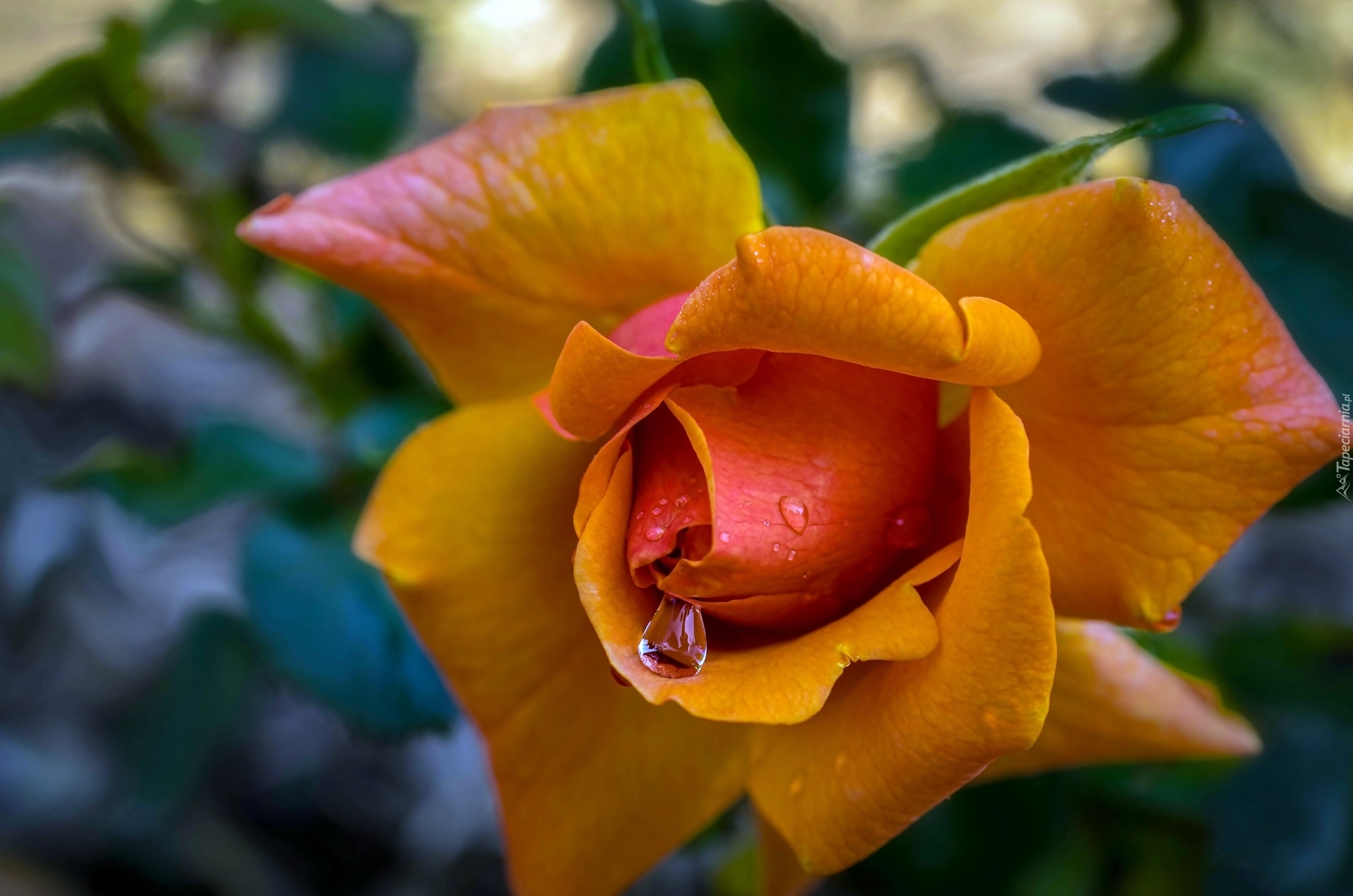 Edytor tapety: Pomarańczowa, Róża, Krople, Wody