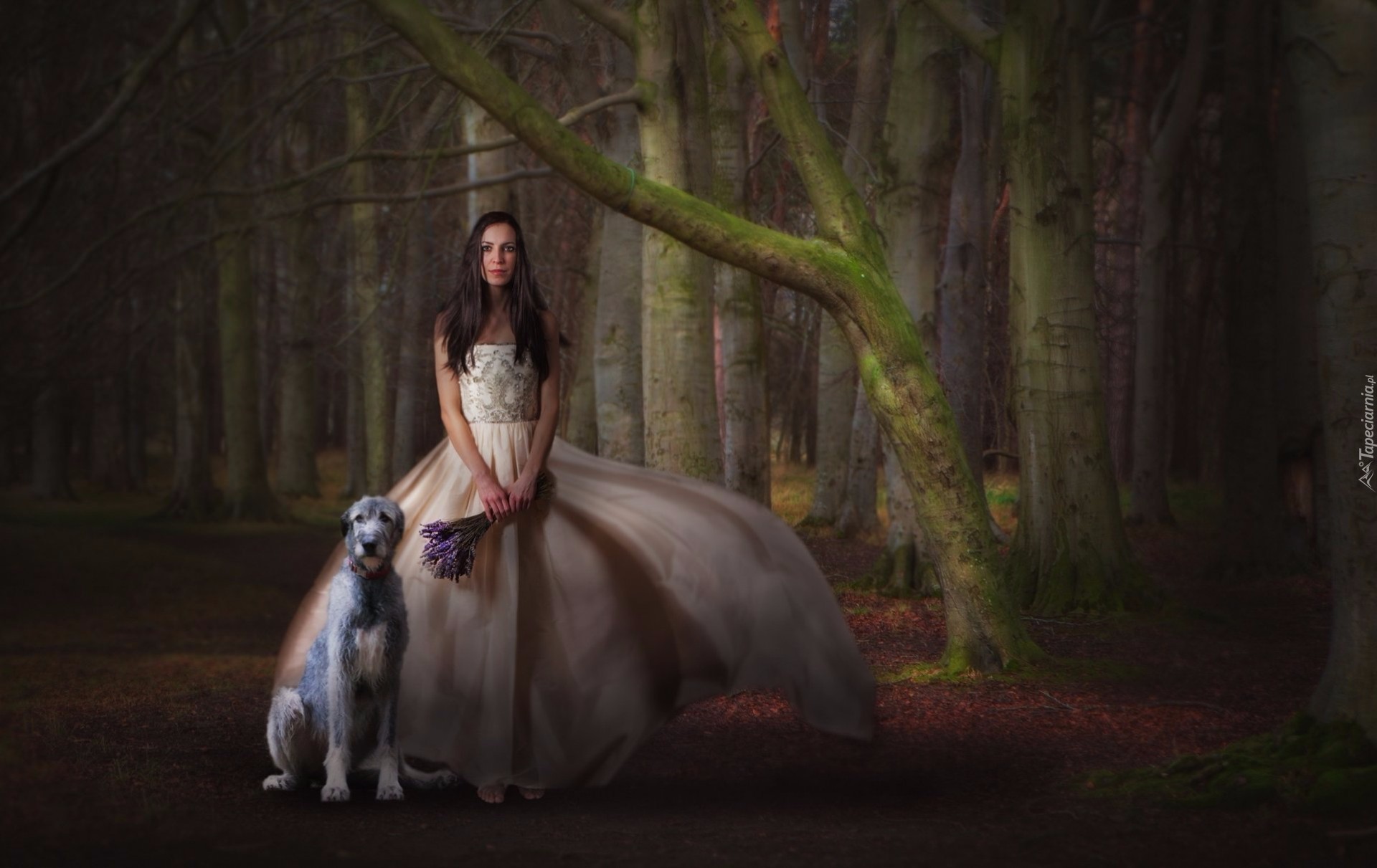 Edytor tapety: Las, Pies, Kobieta, Sukienka