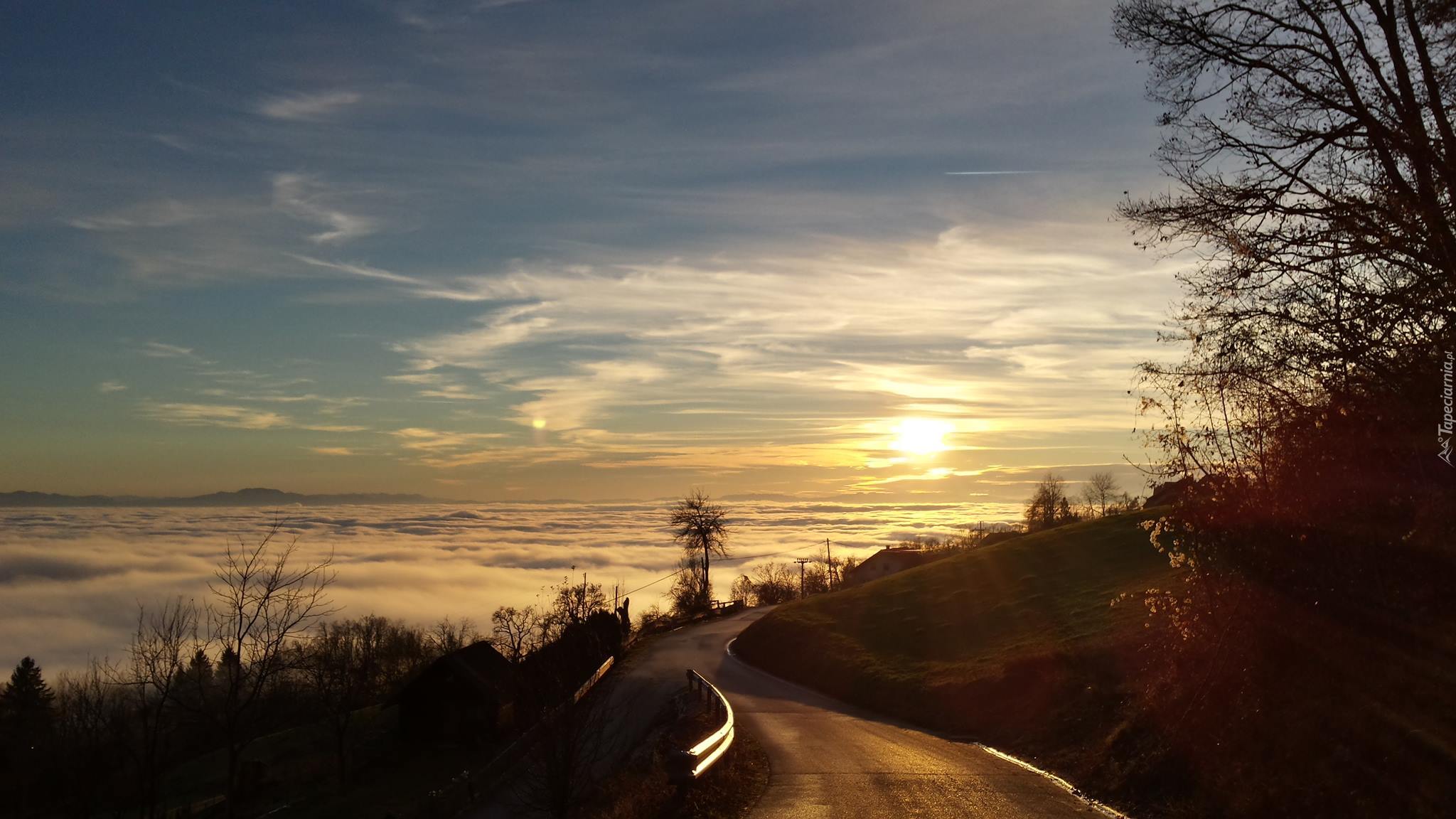 Edytor tapety: Wschód, Słońca, Morze, Droga, Drzewa