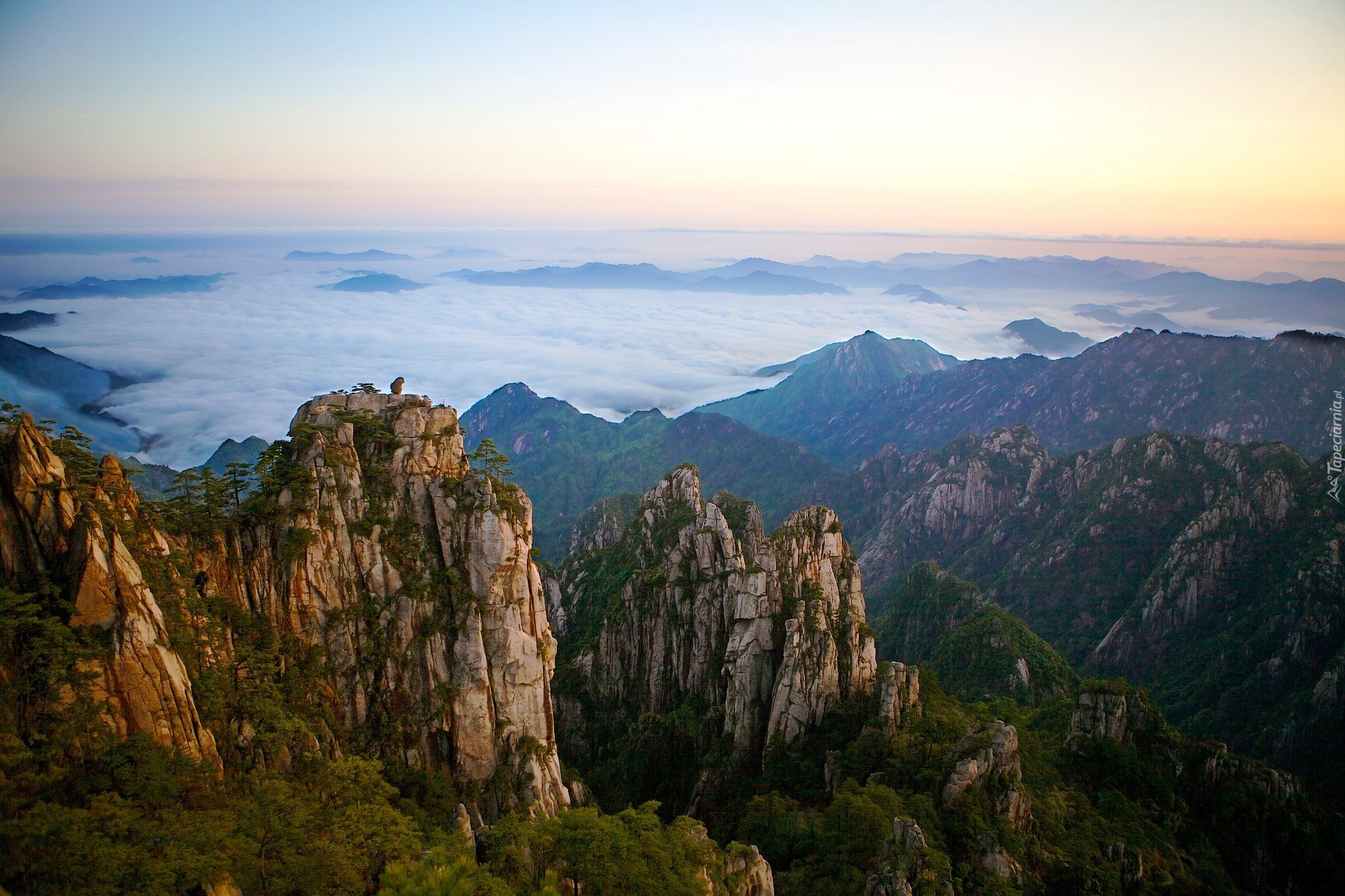 Edytor tapety: Góry, Skały, Mgła, Drzewa