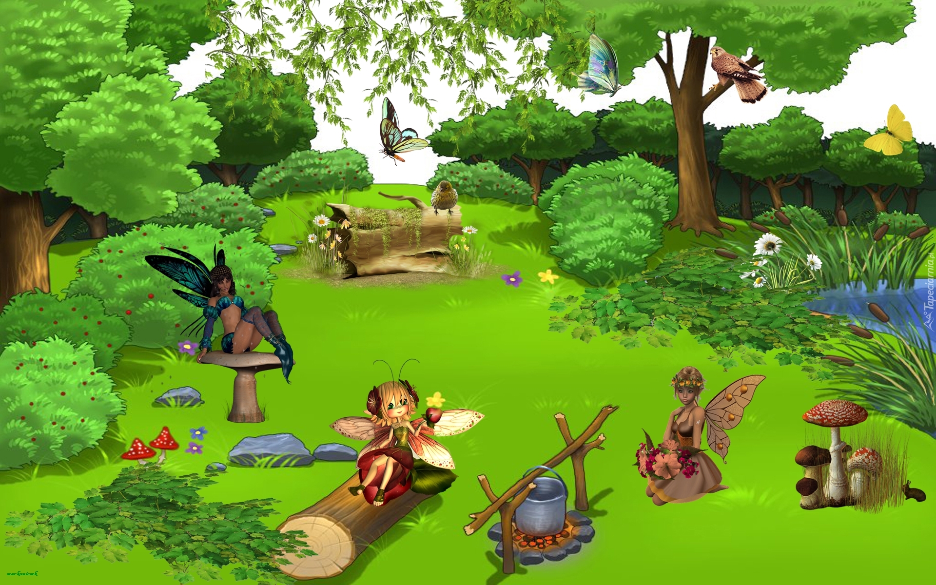 Edytor tapety: Grafika, 2D, Las, Motylki