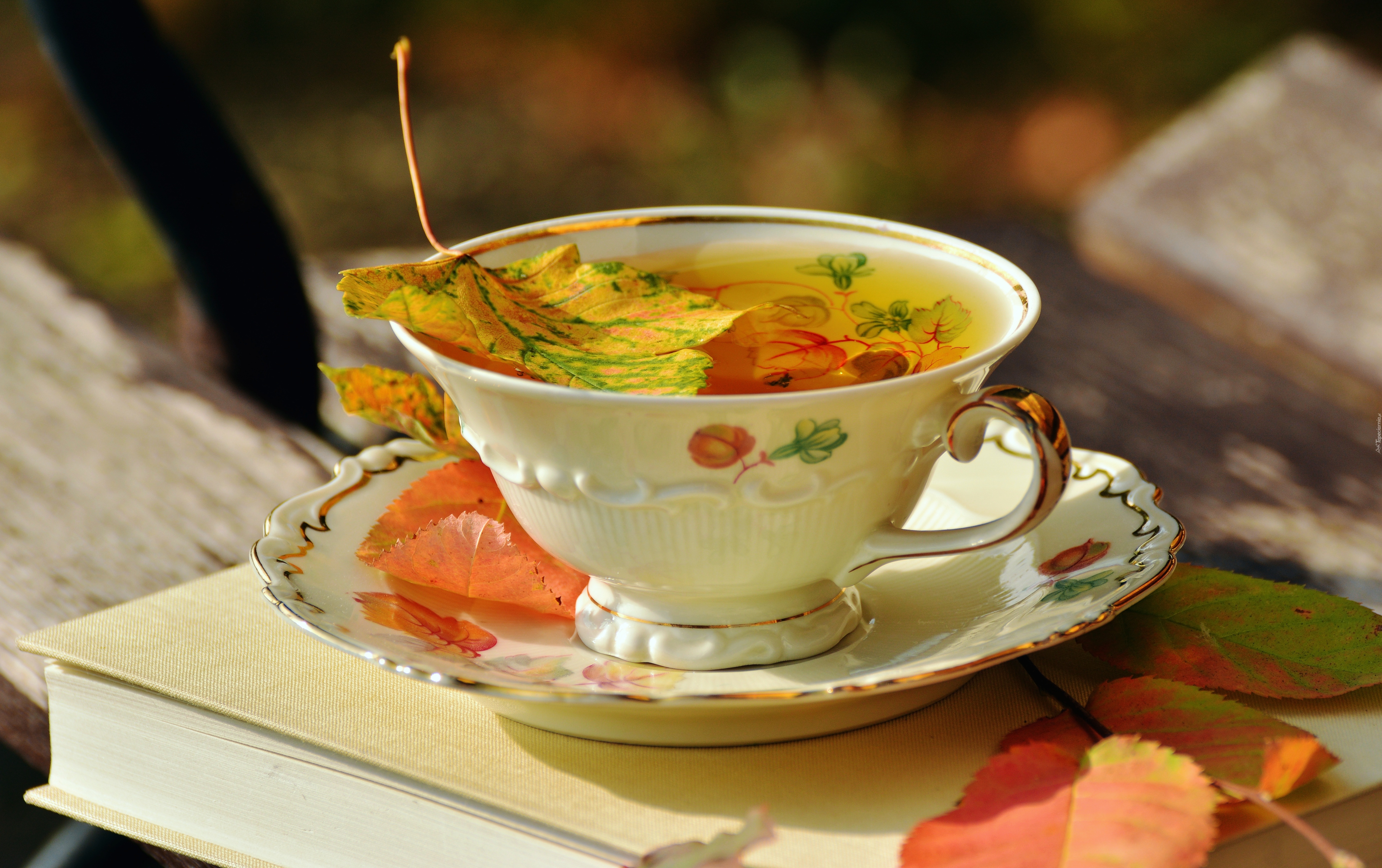 Edytor tapety: Filiżanka, Herbata, Liście, Jesień