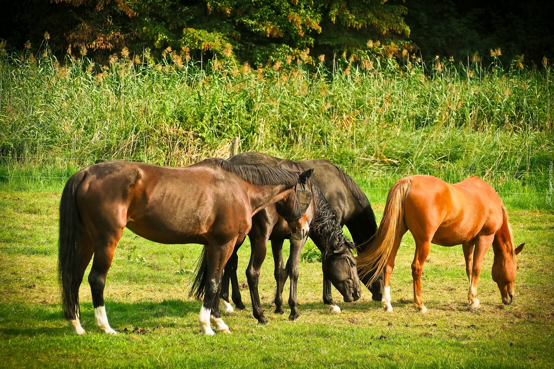 Edytor tapety: Konie, Pastwisko, Trawy, Drzewa