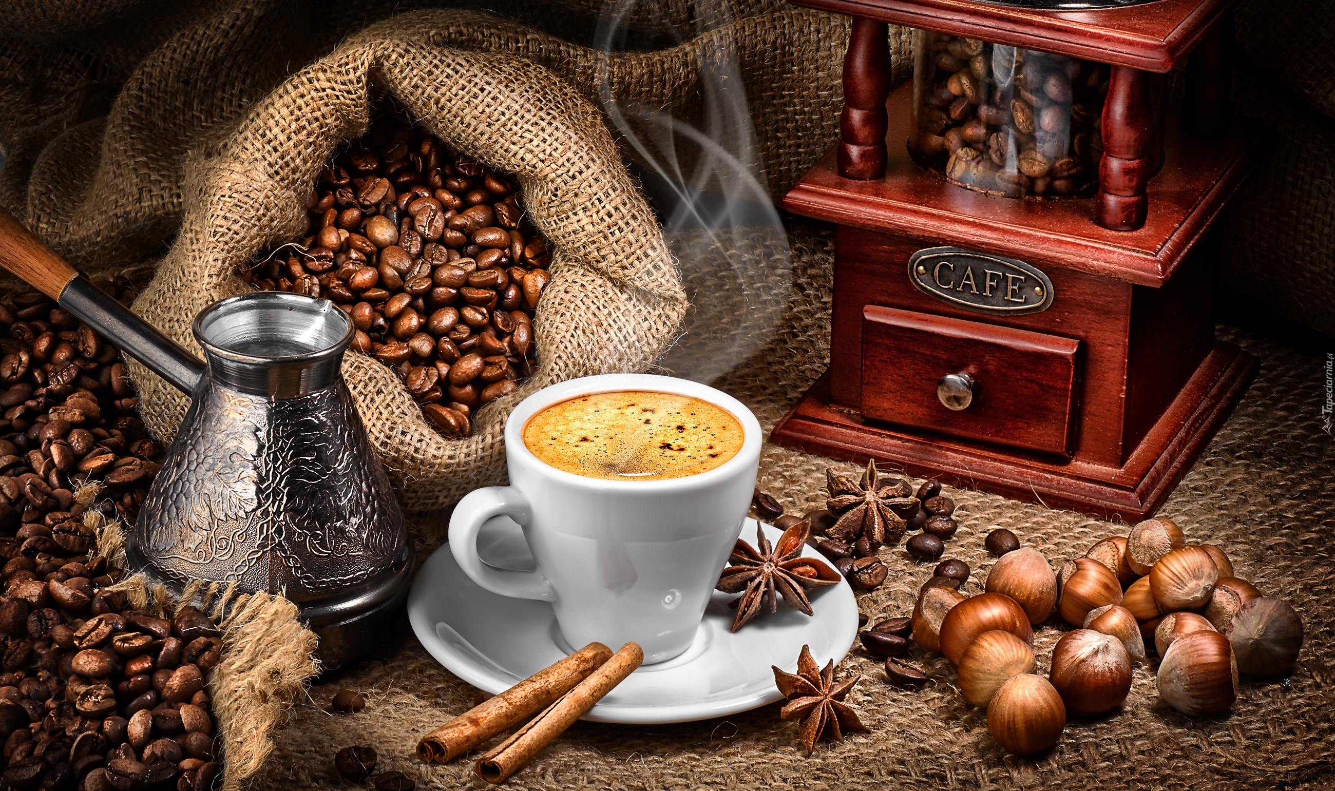 Edytor tapety: Kompozycja, Kawa, Ziarna, Młynek