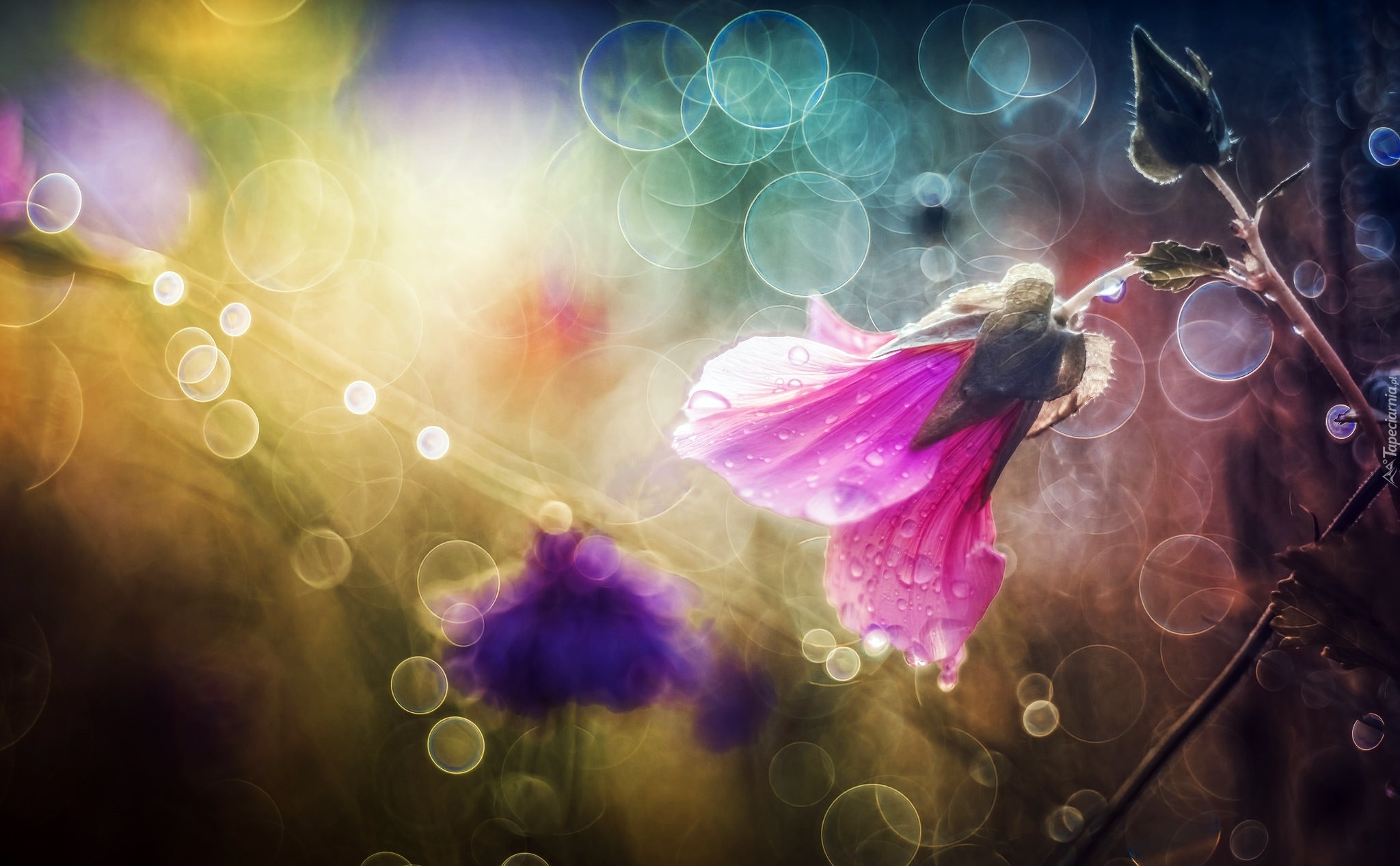 Edytor tapety: Ślazówka letnia, Kwiat, Bokeh, Światło