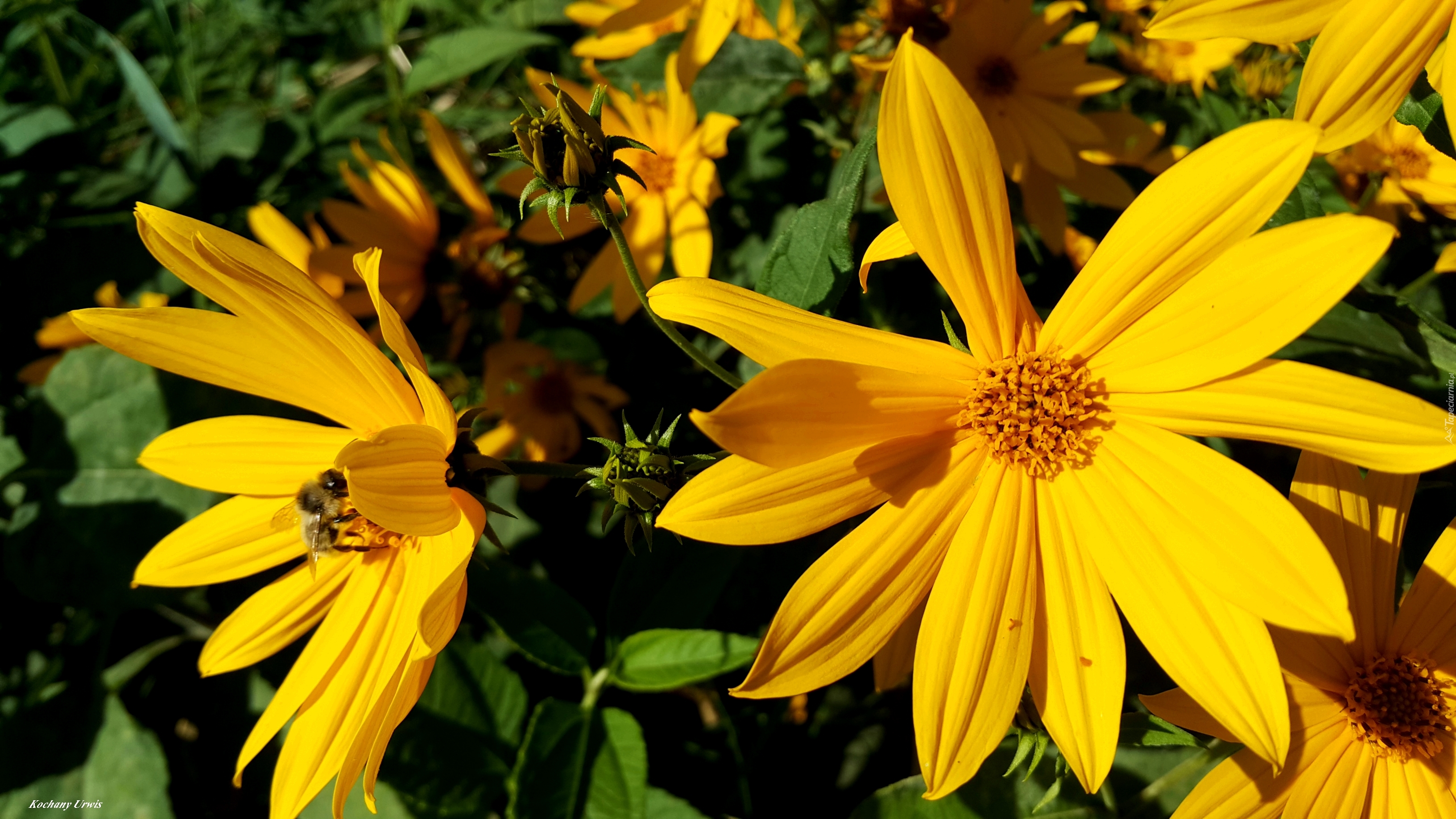 Edytor tapety: Dzikie, Słoneczniki ozdobne, Pszczoła
