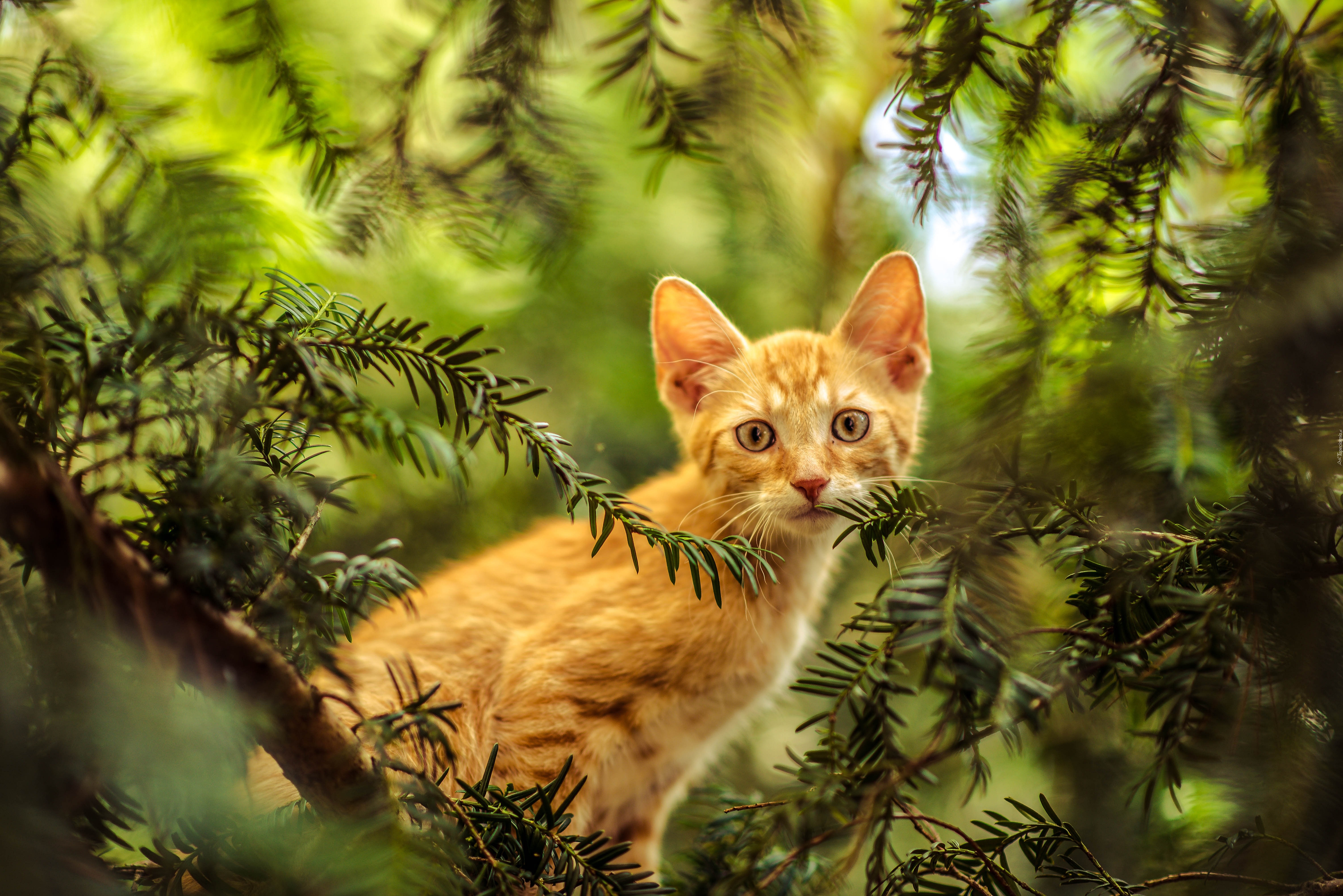 Edytor tapety: Mały, Rudy, Kotek, Drzewo