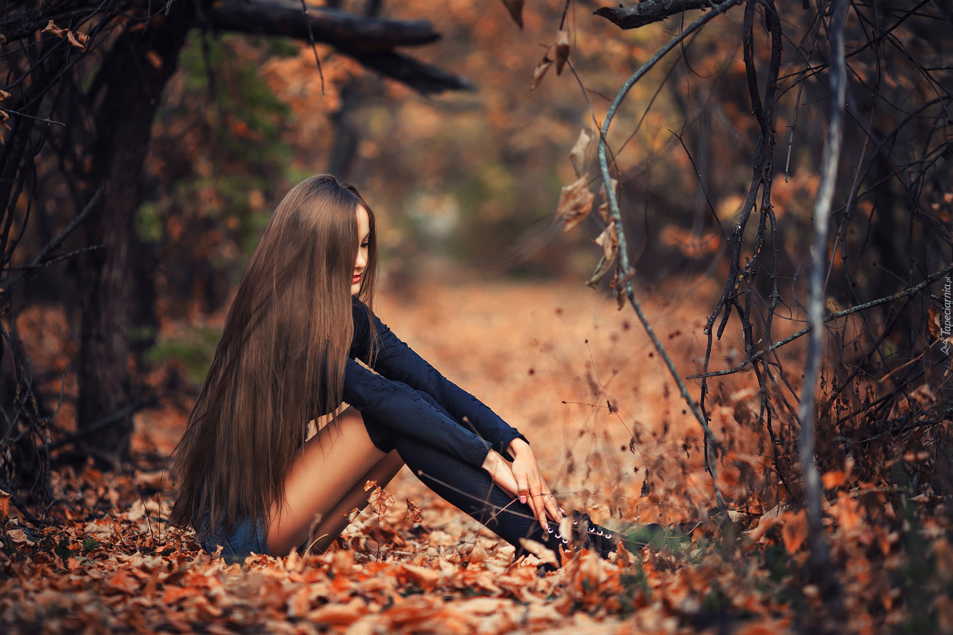 Edytor tapety: Las, Drzewa, Liście, Kobieta