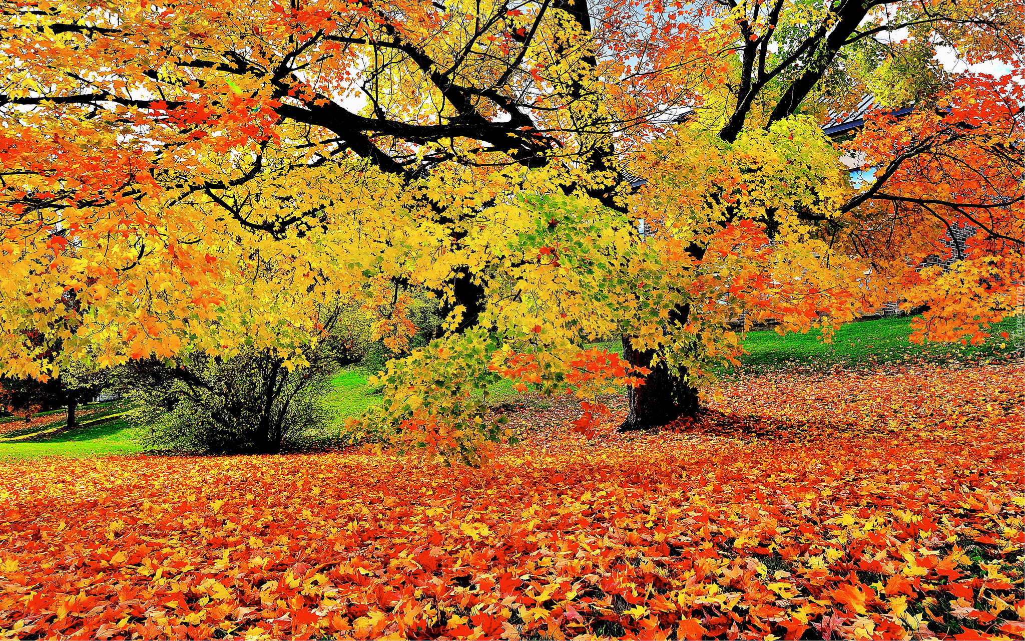 Edytor tapety: Liście, Leżące, Krzew, Drzewo, Park