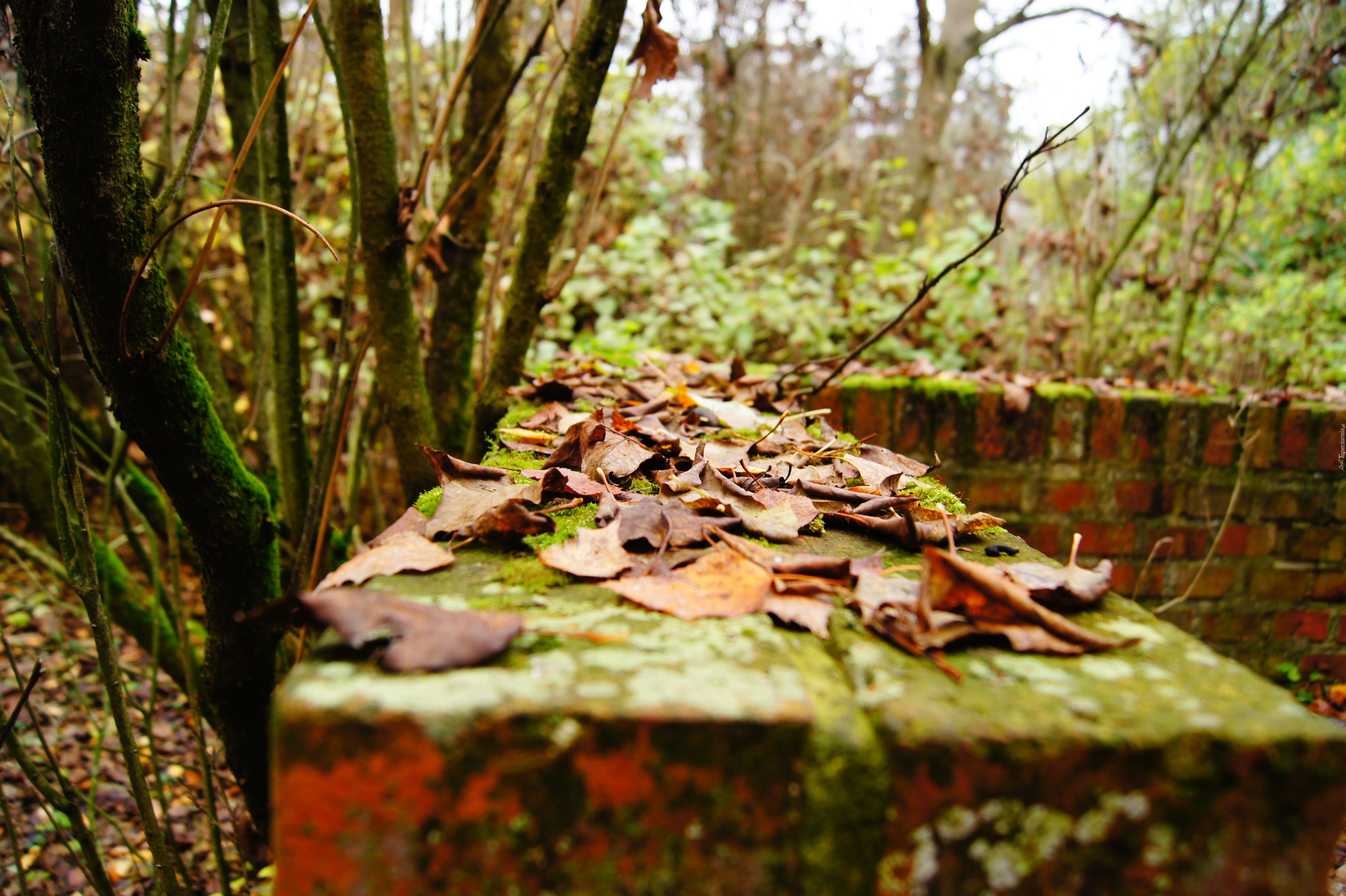 Edytor tapety: Jesień, Ceglany, Murek, Liście, Krzewy, Gałęzie