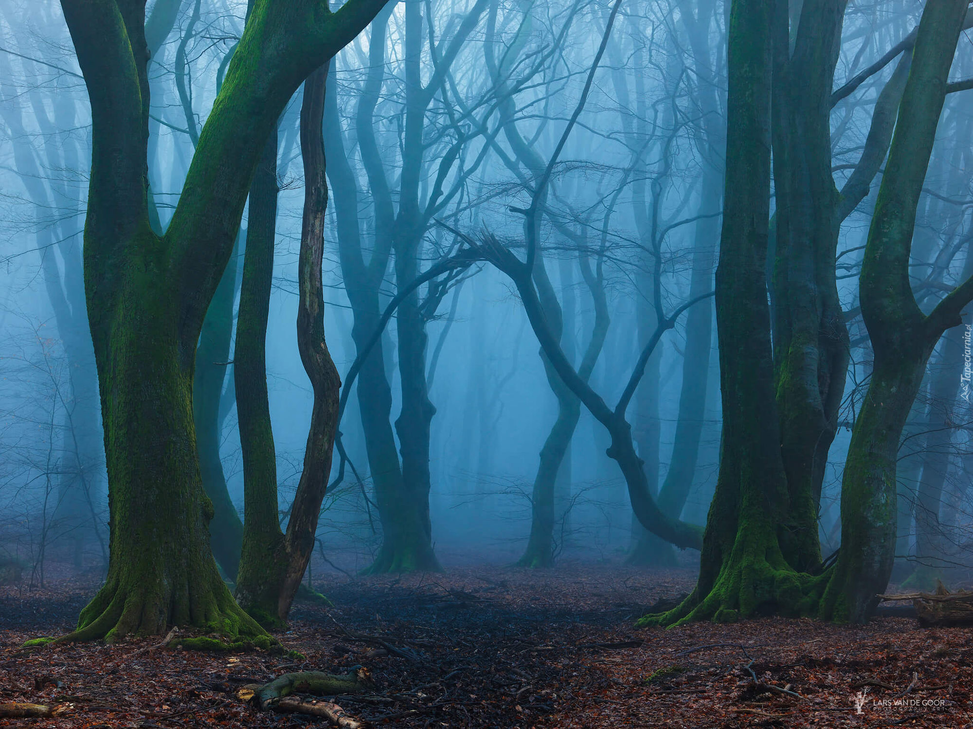 Edytor tapety: Jesień, Las, Mgła, Drzewa, Mech