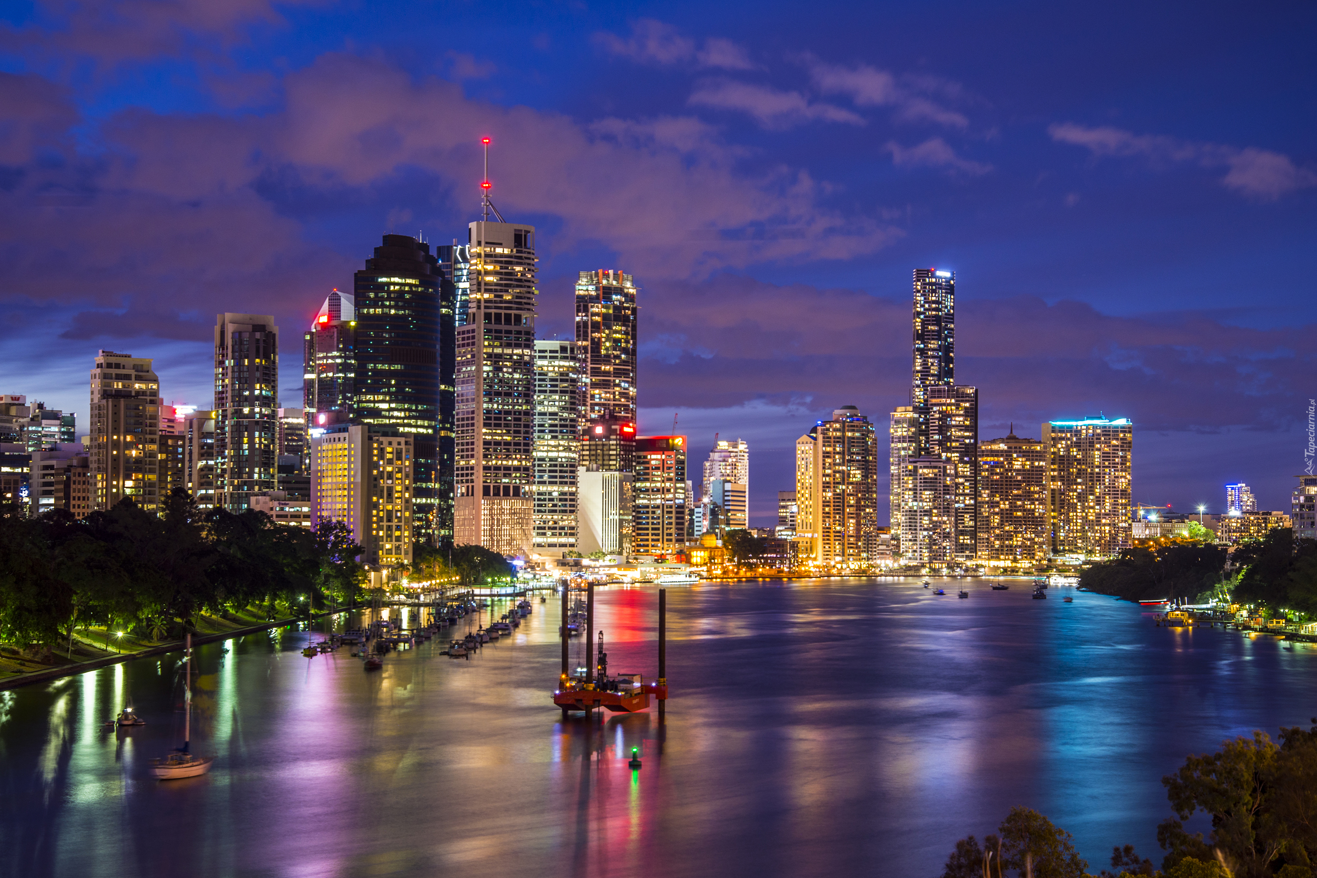 Edytor tapety: Brisbane, Australia, Noc, Drapacze chmur