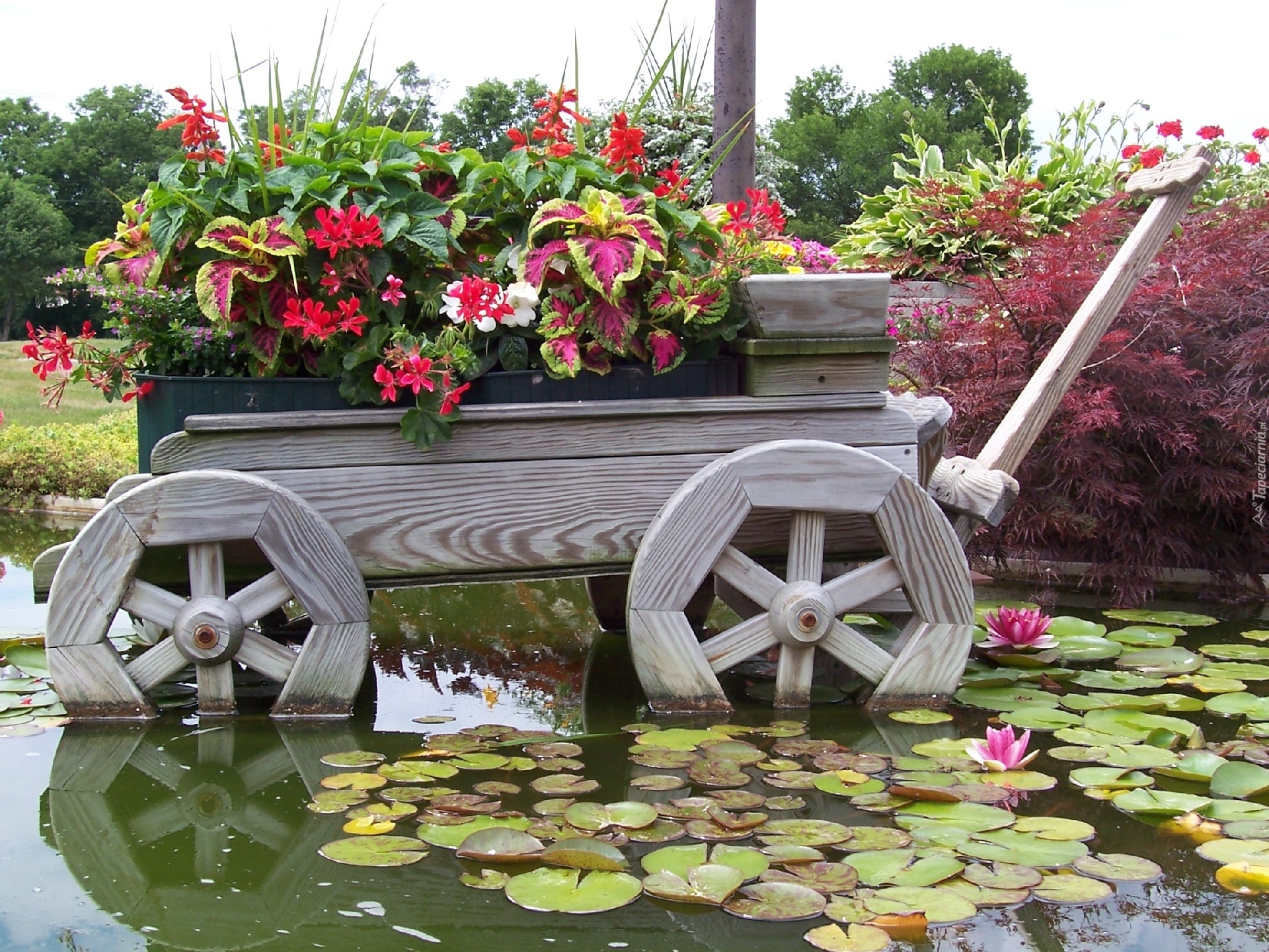 Edytor tapety: Lato, Kwiaty na wozie