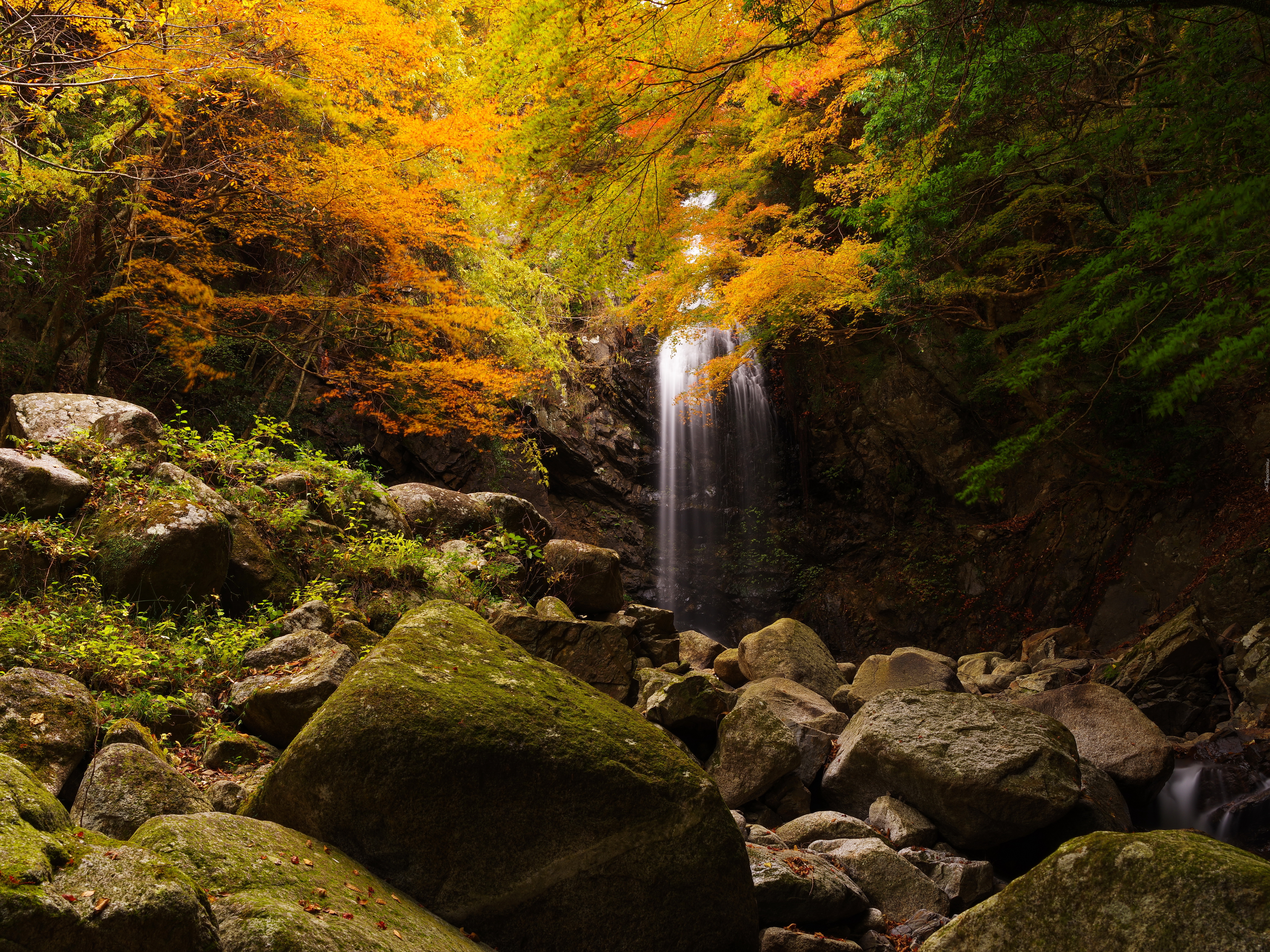 Edytor tapety: Wodospad, Drzewa, Kamienie