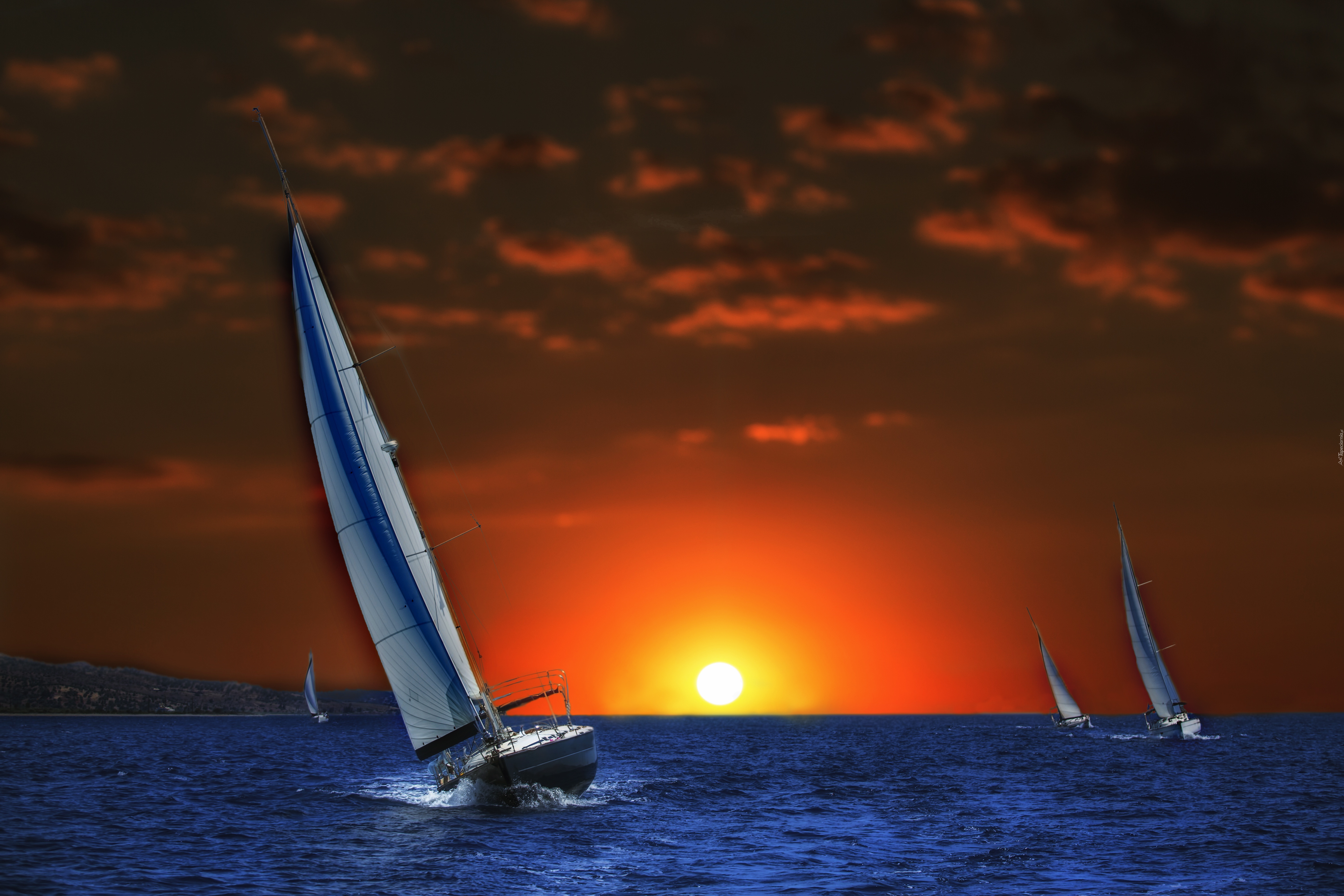 Edytor tapety: Żaglówki, Morze, Zachód słońca