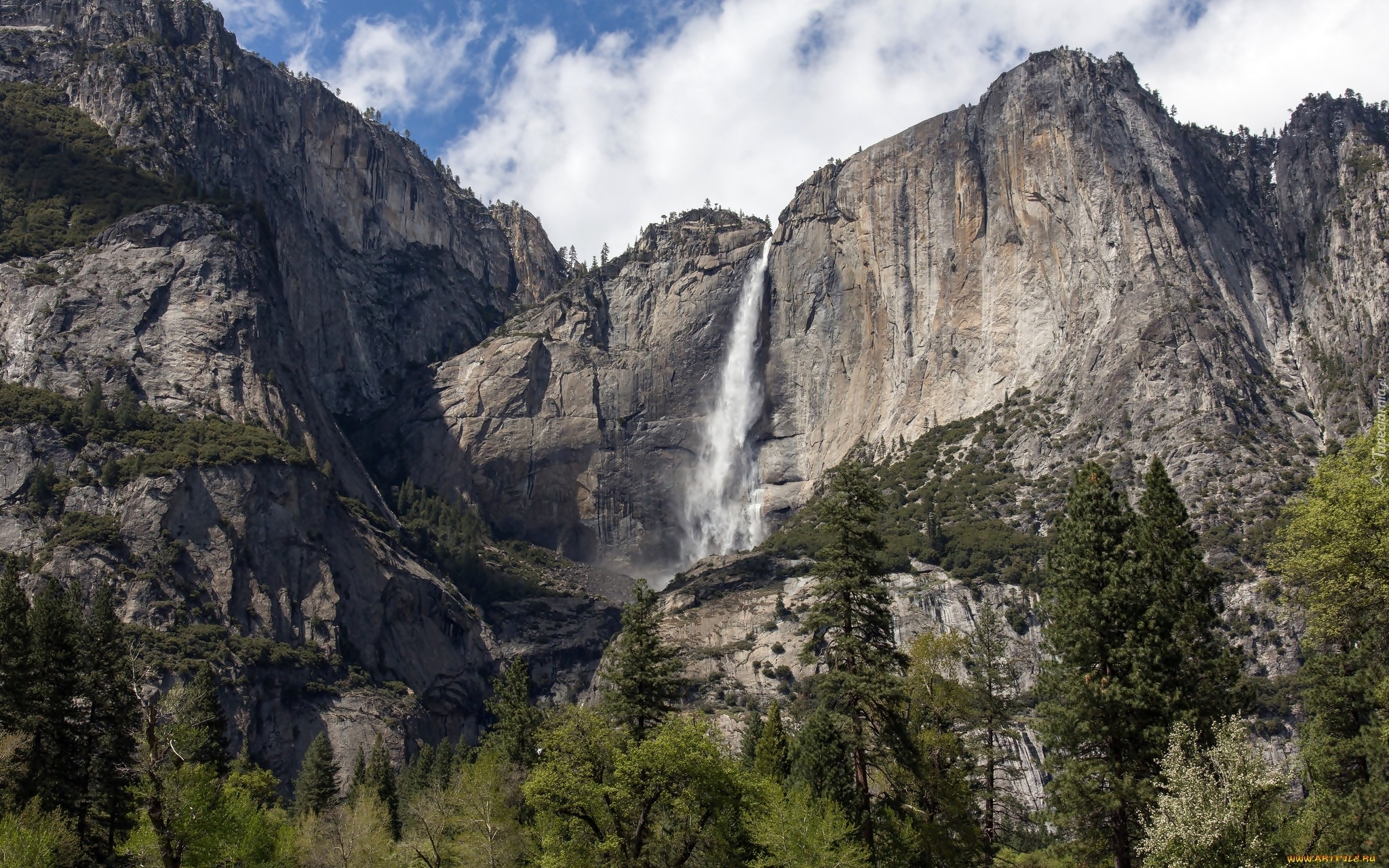Edytor tapety: Góry, Wodospad, Las