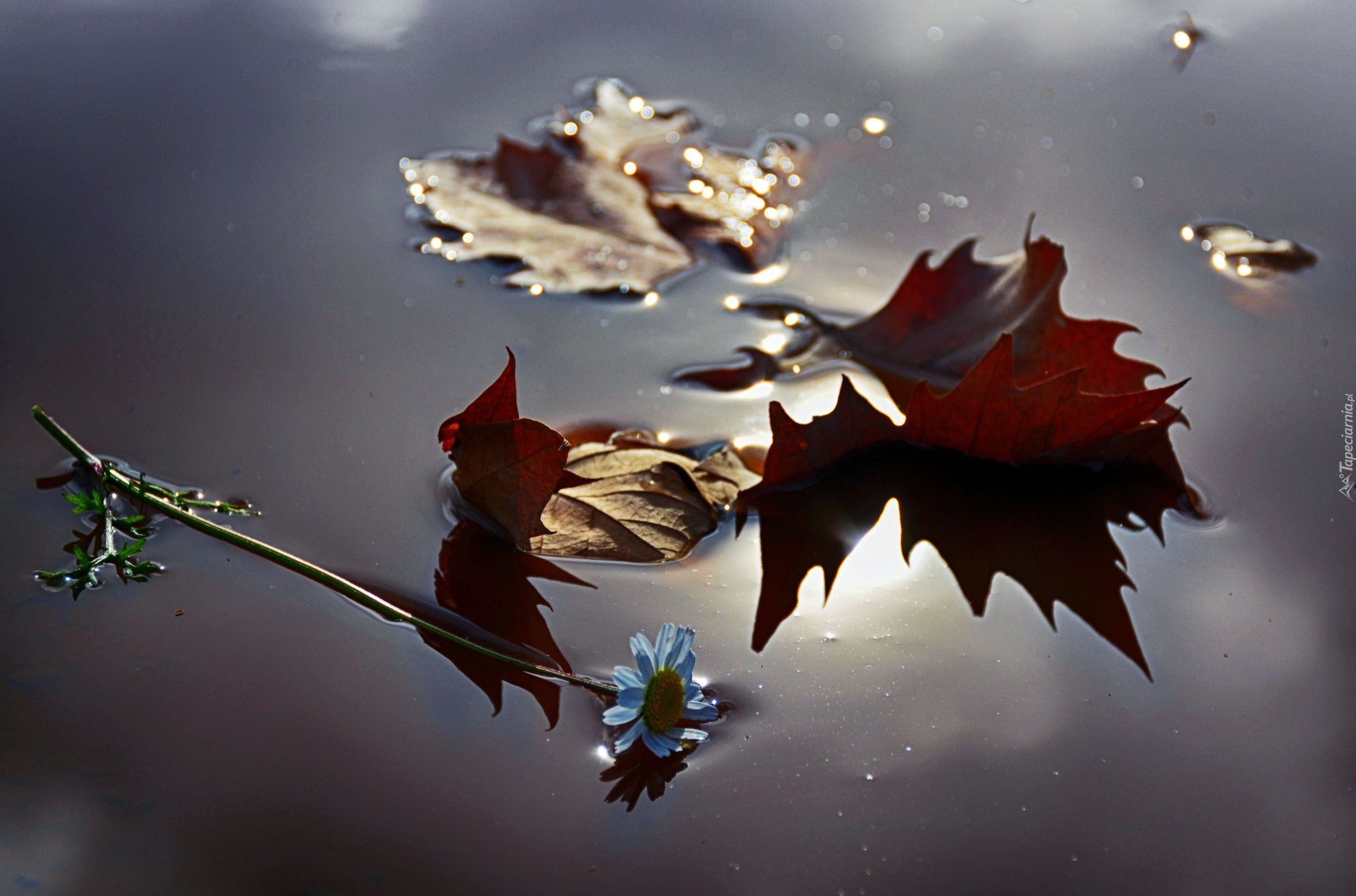 Edytor tapety: Liście, Złocień, Na, Wodzie, Makro