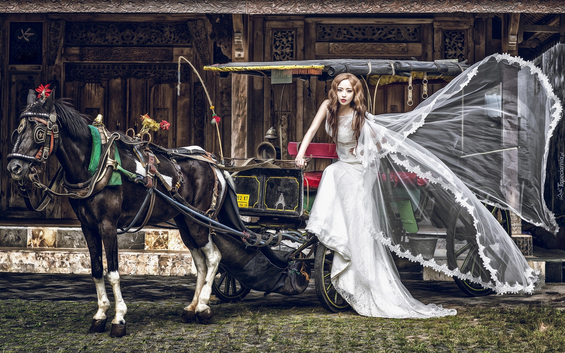 Edytor tapety: Ślub, Panna, Młoda, Kobieta, Koń, Bryczka