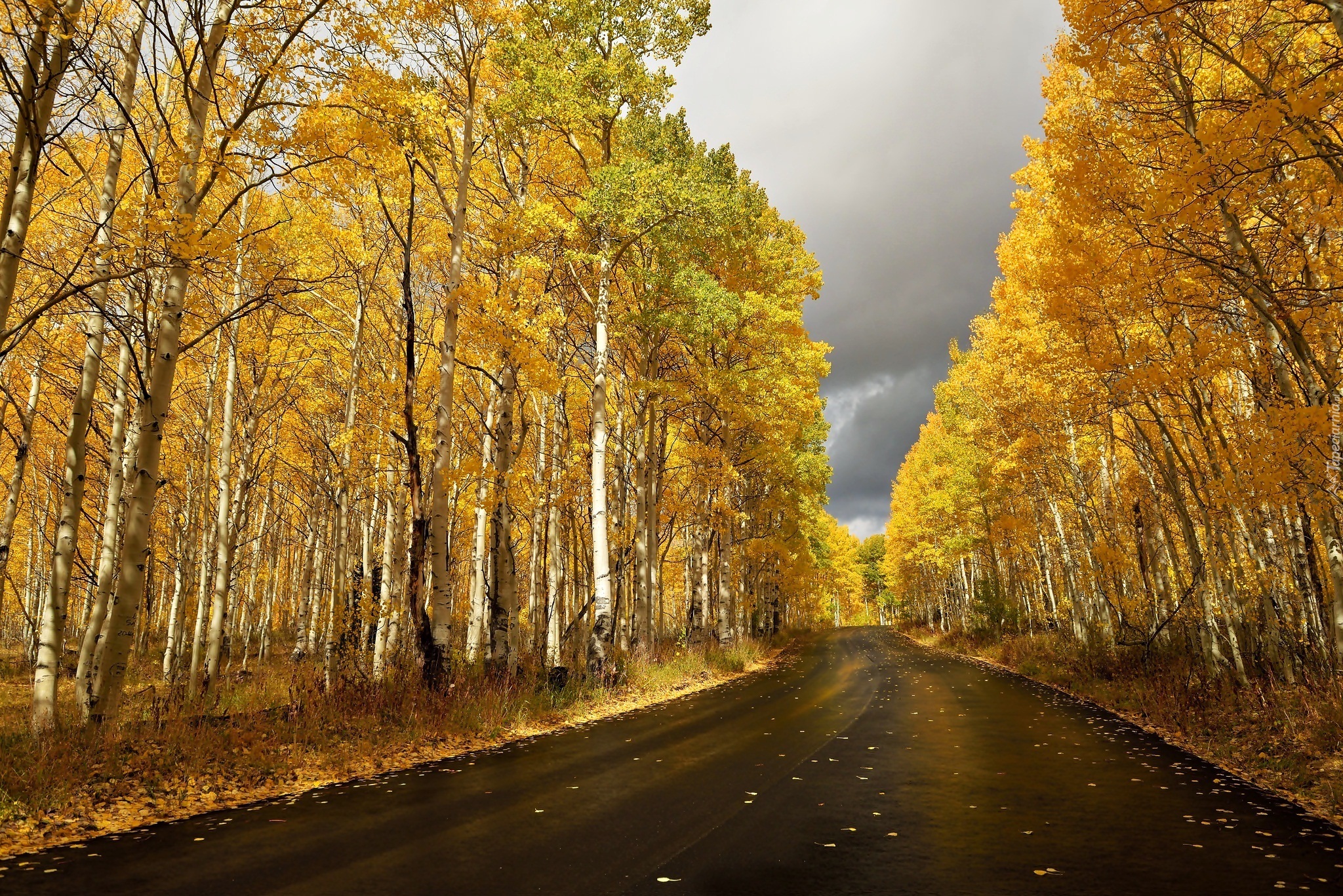 Edytor tapety: Jesień, Droga, Brzozy, Liście