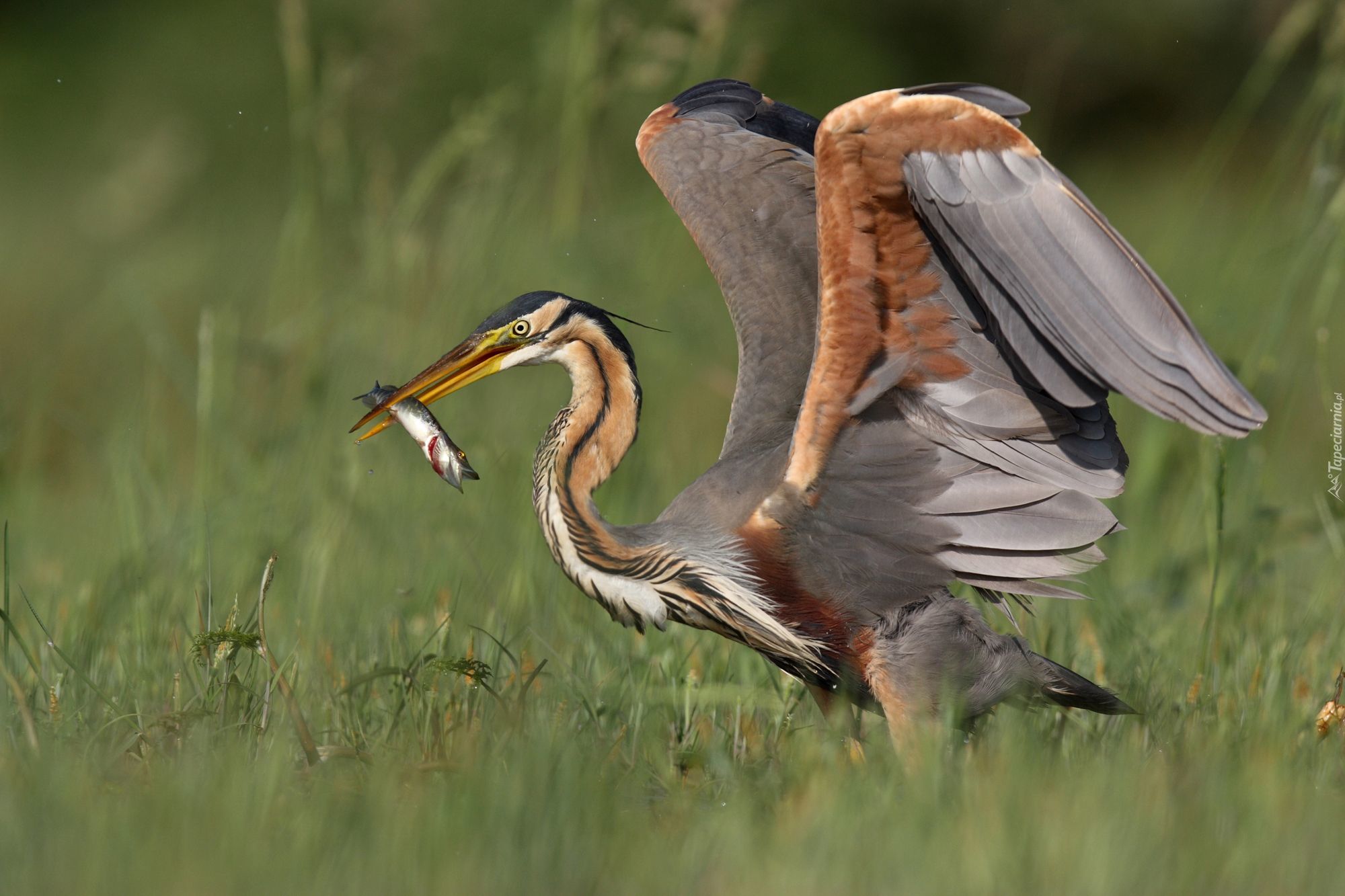 Edytor tapety: Czapla, Purpurowa, Rybka, Rozmyte, Tło