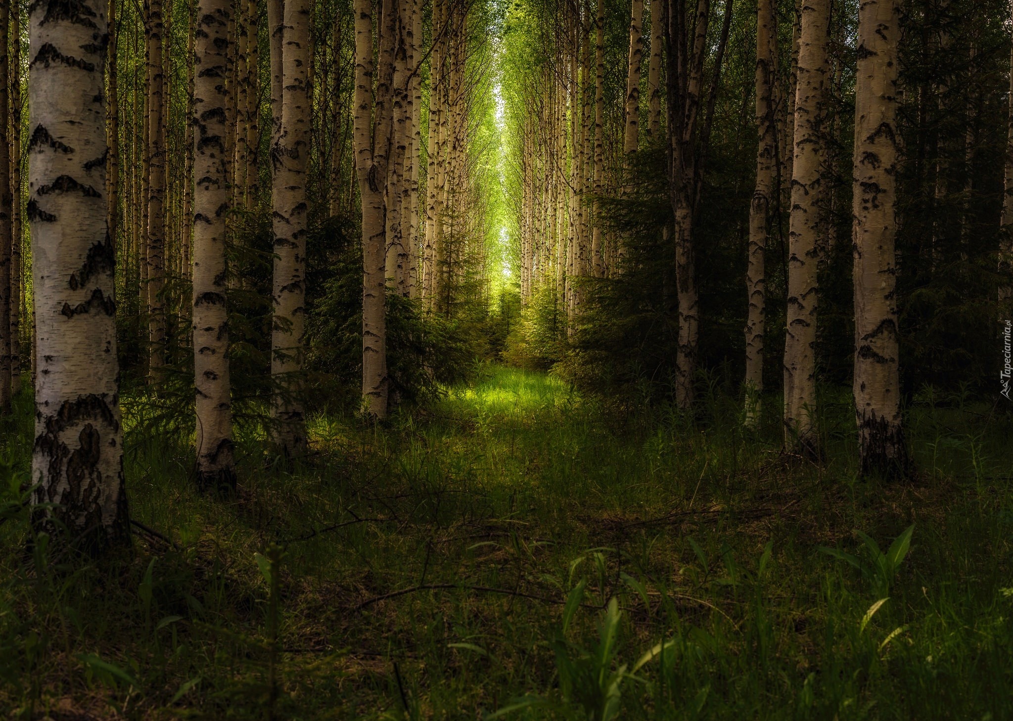Edytor tapety: Las, Brzozy, Przebijające światło