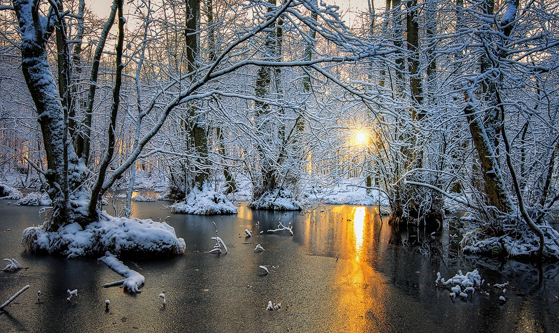 Edytor tapety: Zima, Szron, Las, Drzewa, Lód, Słońce