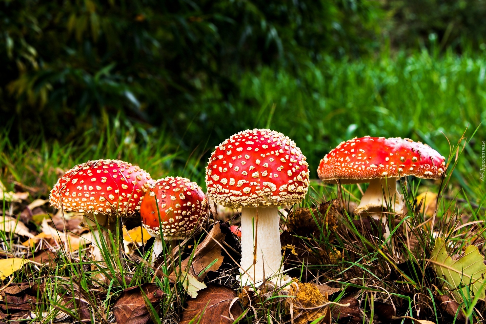 Edytor tapety: Grzyby, Muchomory, Ściółka, Leśna