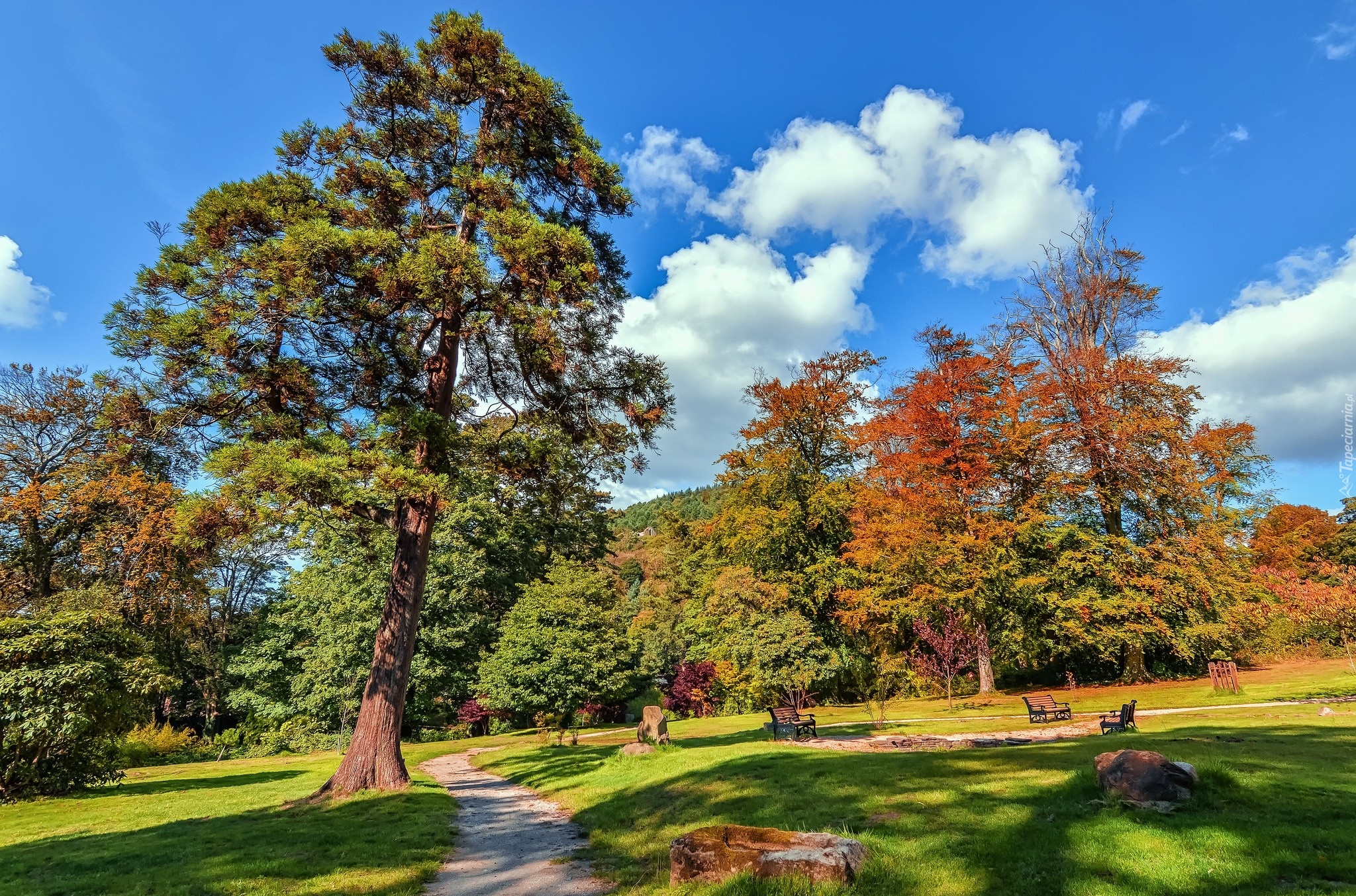 Edytor tapety: Jesień, Park, Drzewa, Ścieżka