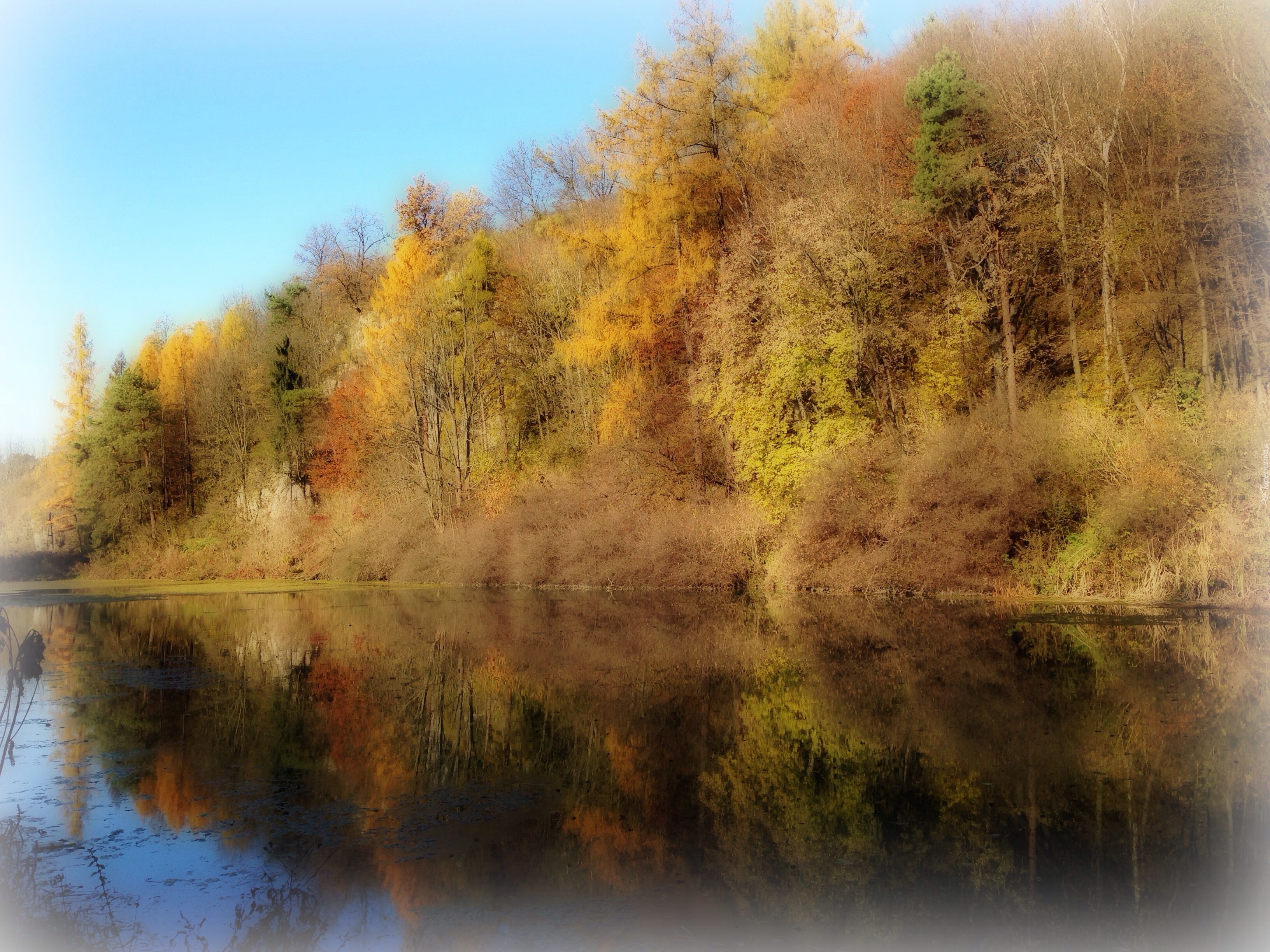 Edytor tapety: Jezioro, Jesień, Kolorowe, Drzewa, Odbicie