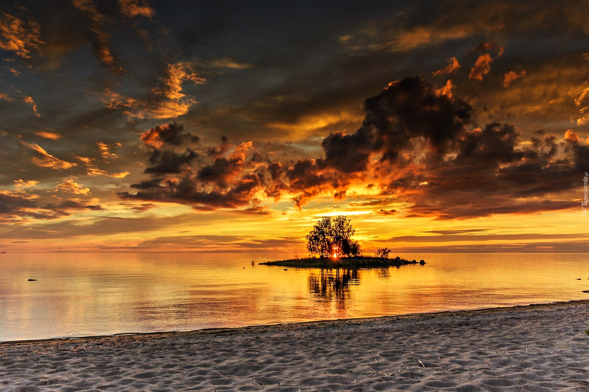 Edytor tapety: Plaża, Morze, Wyspa, Drzewo, Zachód słońca