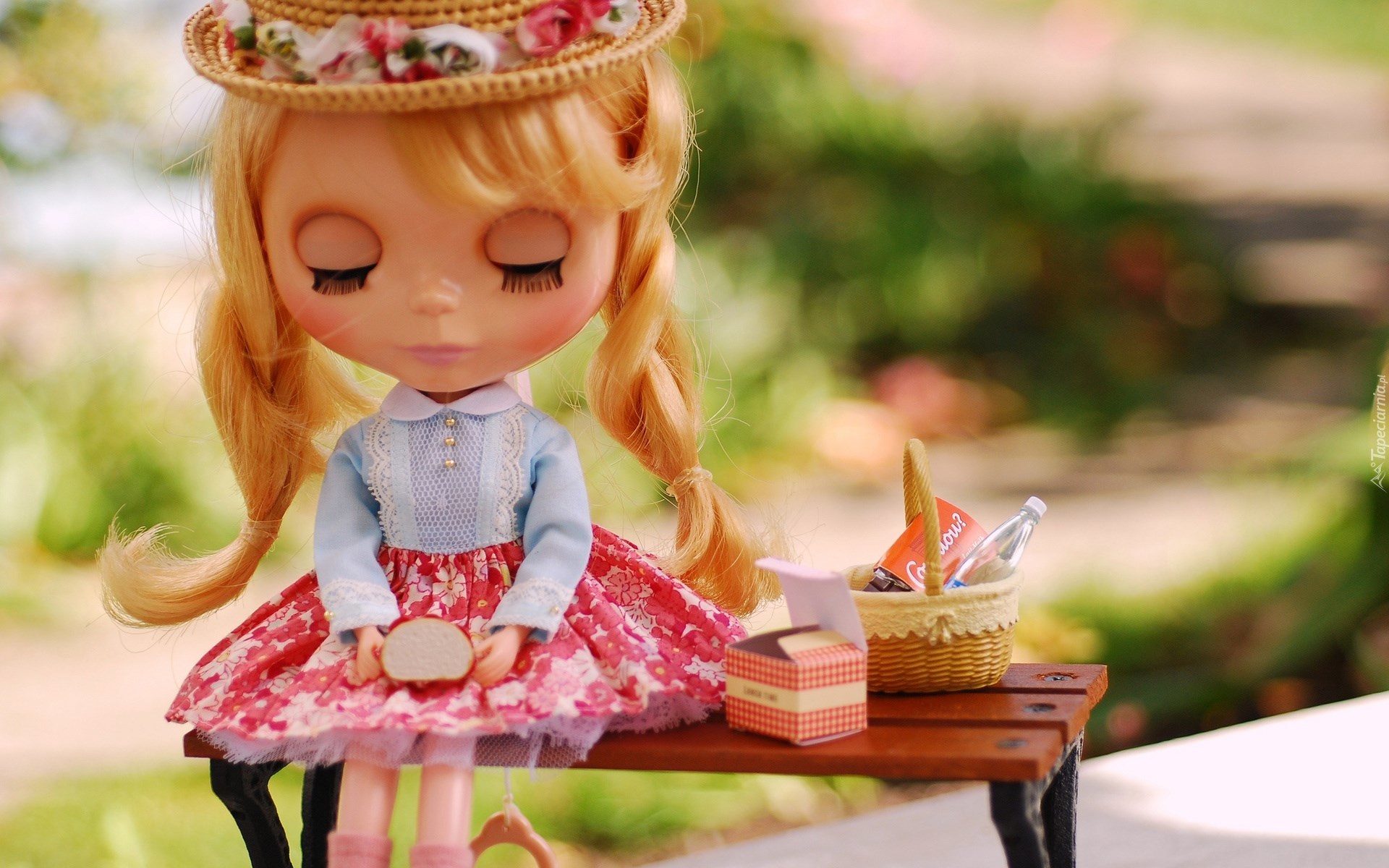 Edytor tapety: Zabawka, Lalka, Kapelusik, Ławeczka
