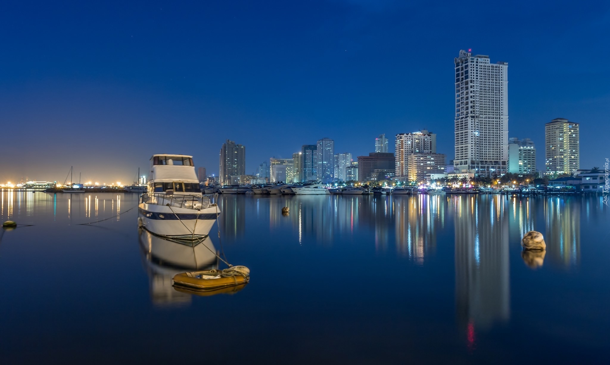 Edytor tapety: Rzeka, Przystań, Statki, Drapacze, Chmur, Miasto, Nocą