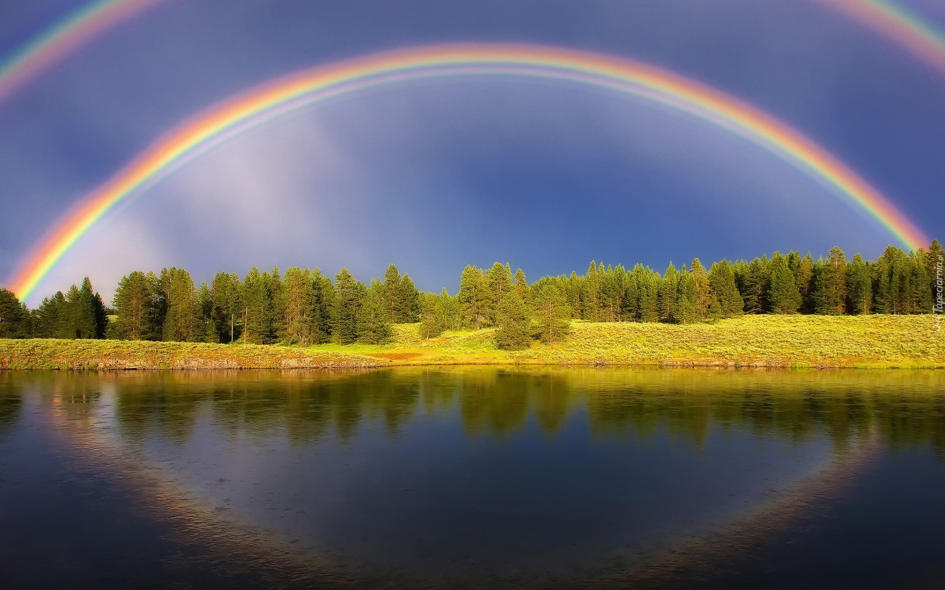Edytor tapety: Jezioro, Las, Podwójna, Tęcza, Odbicie