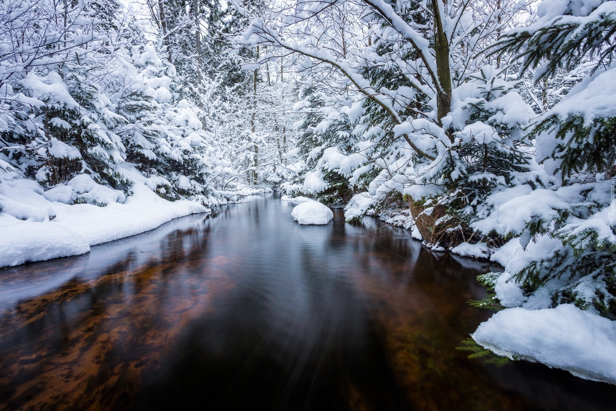 Edytor tapety: Rzeka, Las, Zima