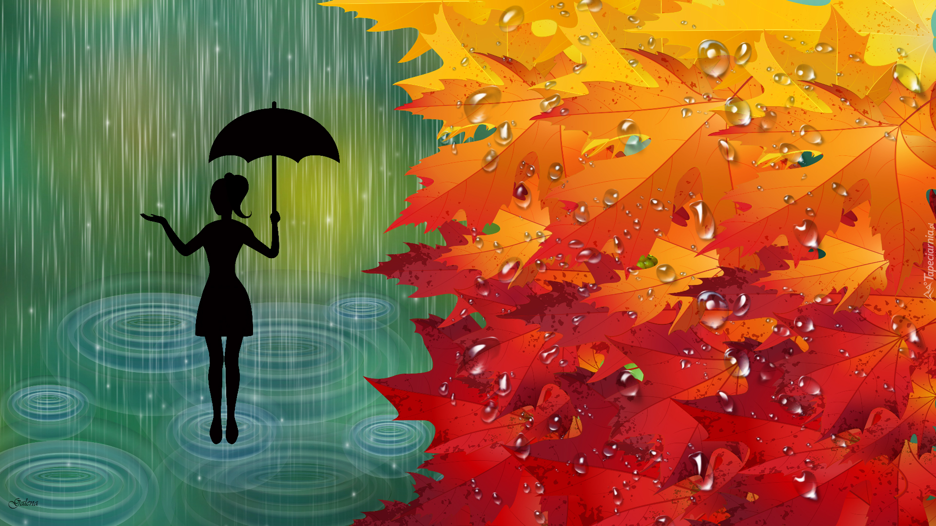 Edytor tapety: Liście, Deszcz, Jesień, Dziewczyna, Grafika