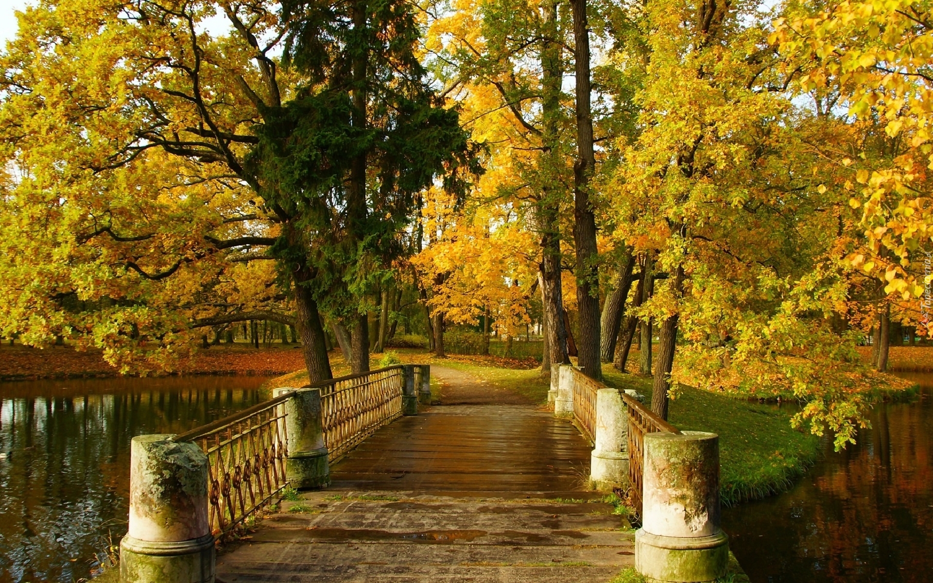 Edytor tapety: Park, Jesień, Drzewa, Mostek