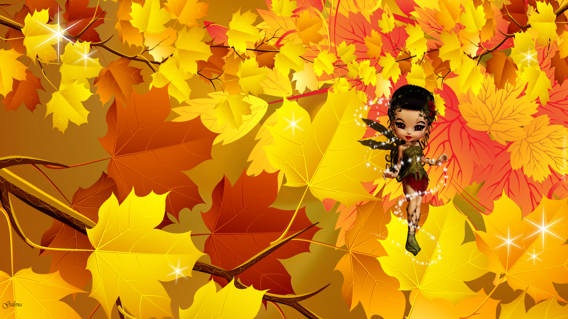 Edytor tapety: Liście, Gałęzie, Laleczka, Jesień, Grafika