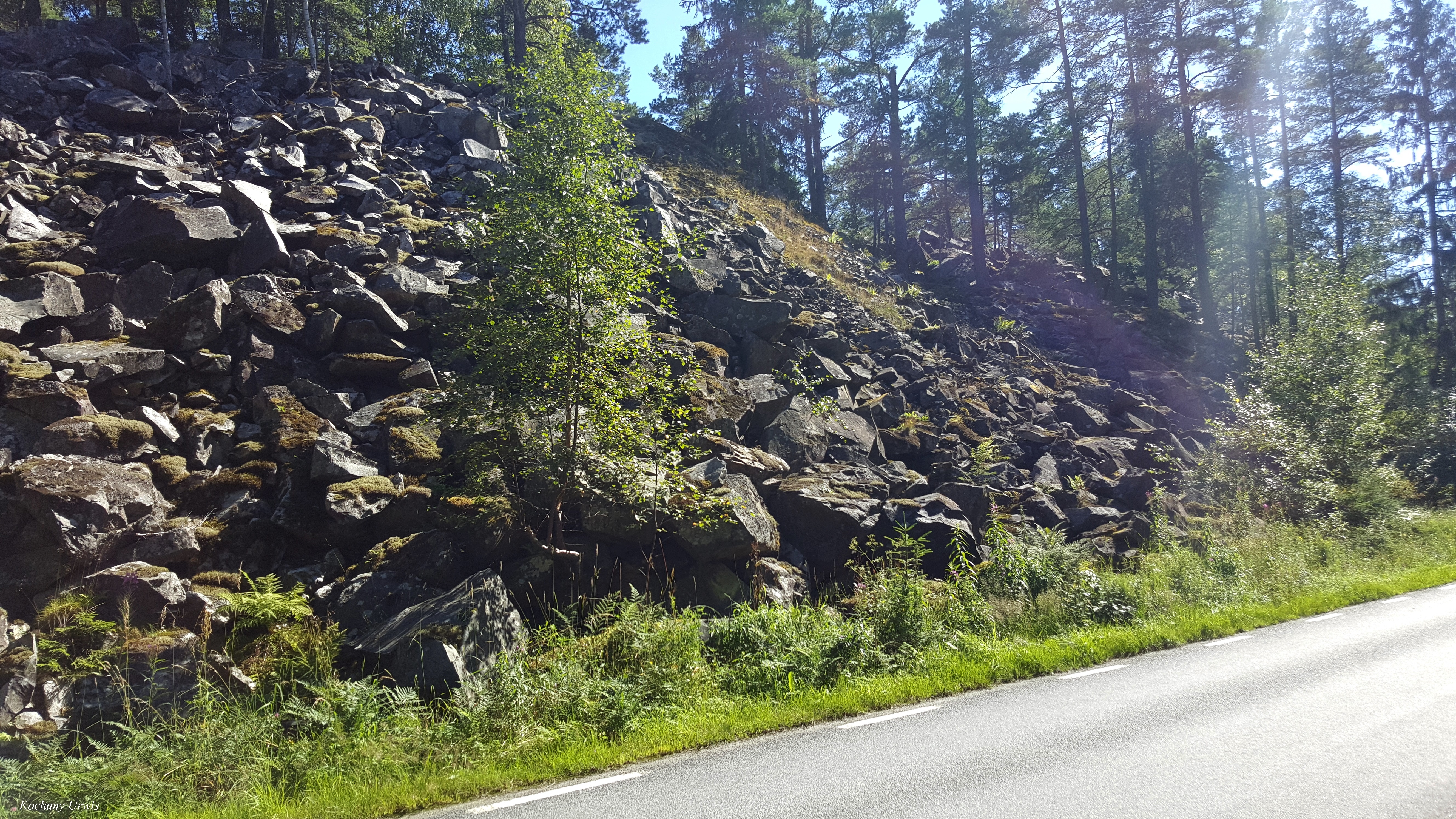 Edytor tapety: Droga, Las, Promienie, Słońca, Kamienie, Skarpa