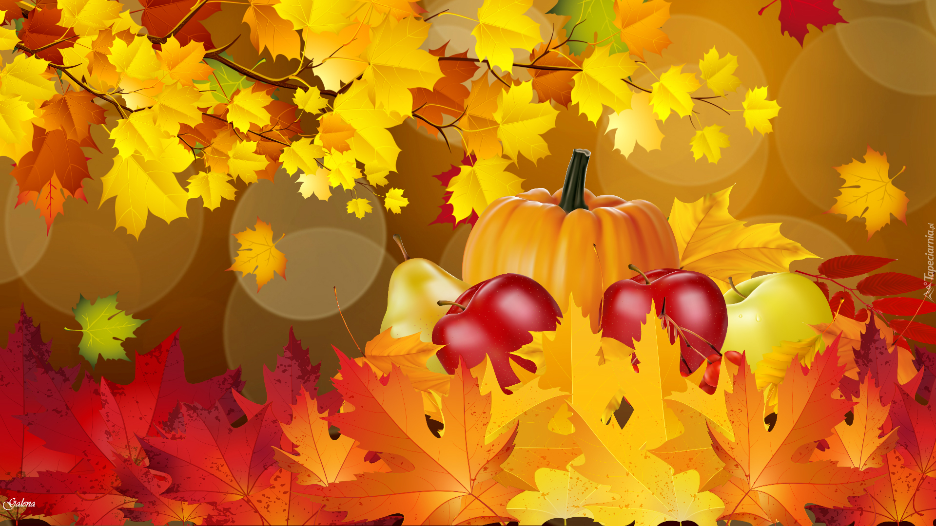 Edytor tapety: Owoce, Liście, Jesień, Grafika