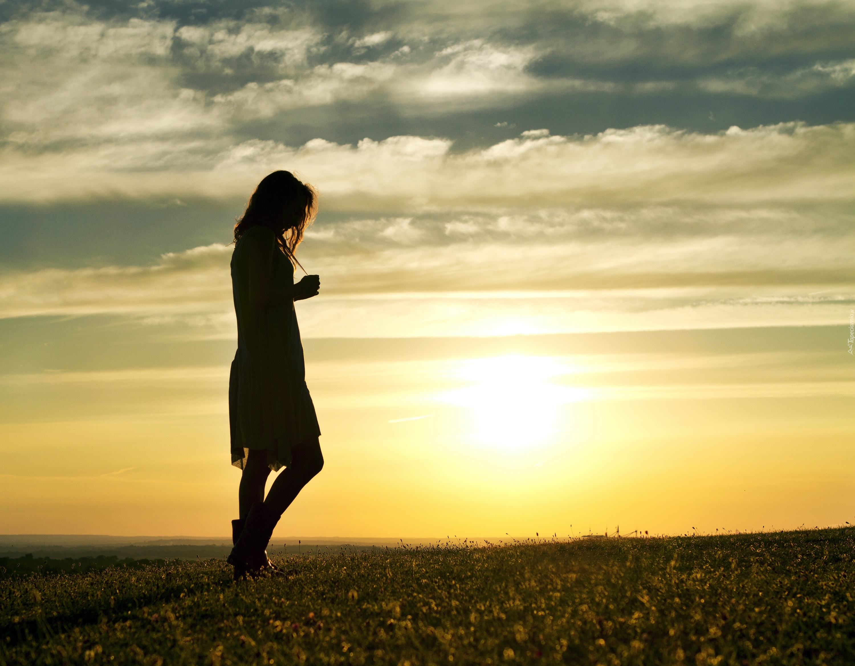 Edytor tapety: Dziewczyna, Łąka, Chmury