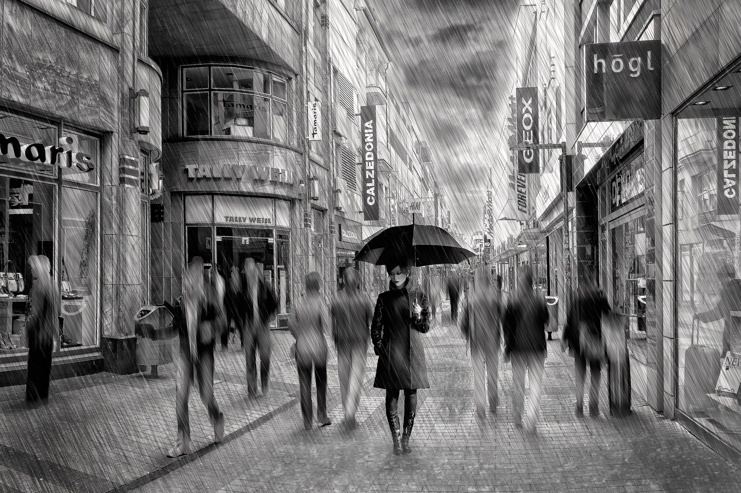 Edytor tapety: Ludzie, Deszcz, Sklepy, Ulica
