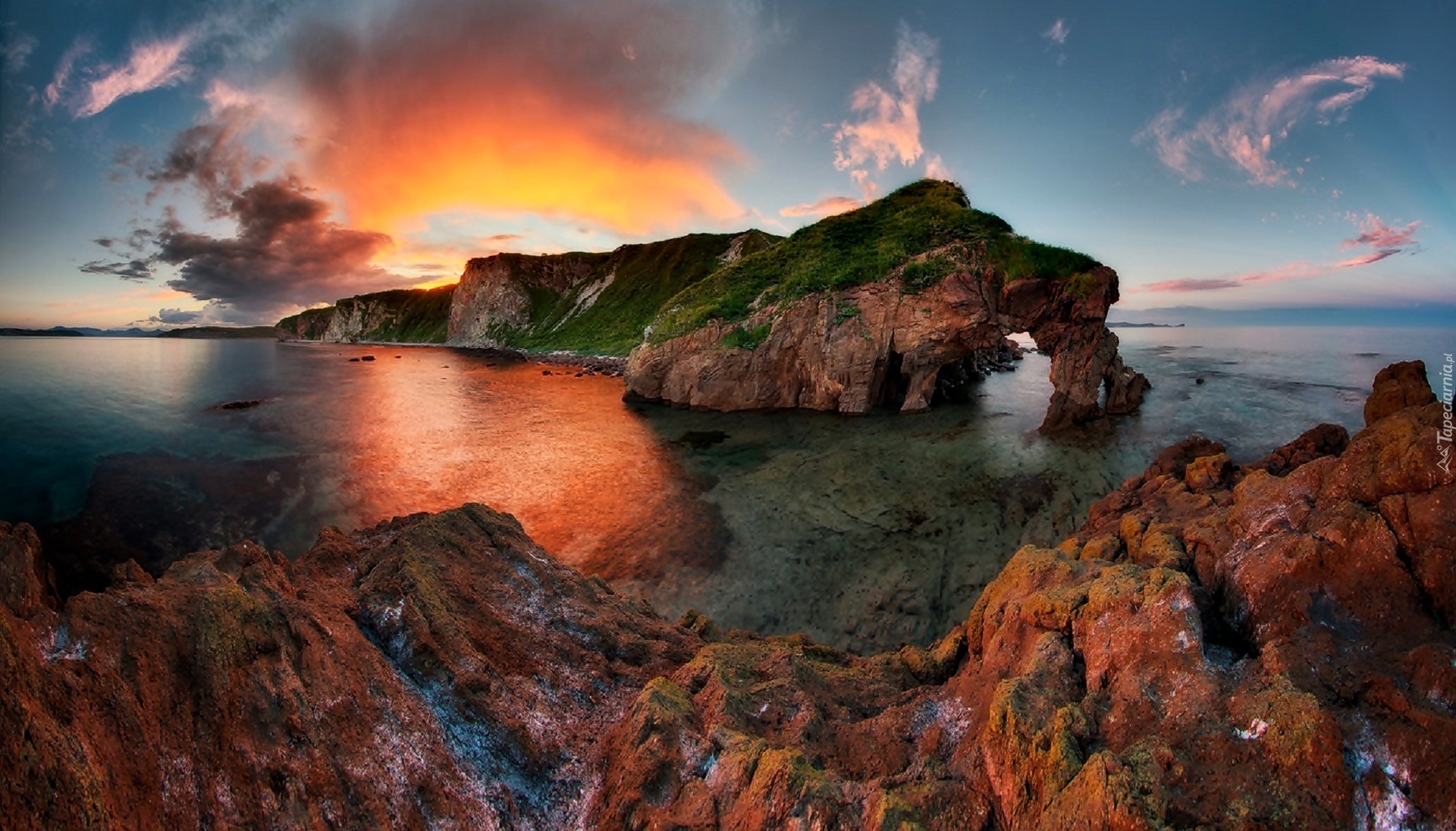 Edytor tapety: Morze, Skały, Zachód, Słońca