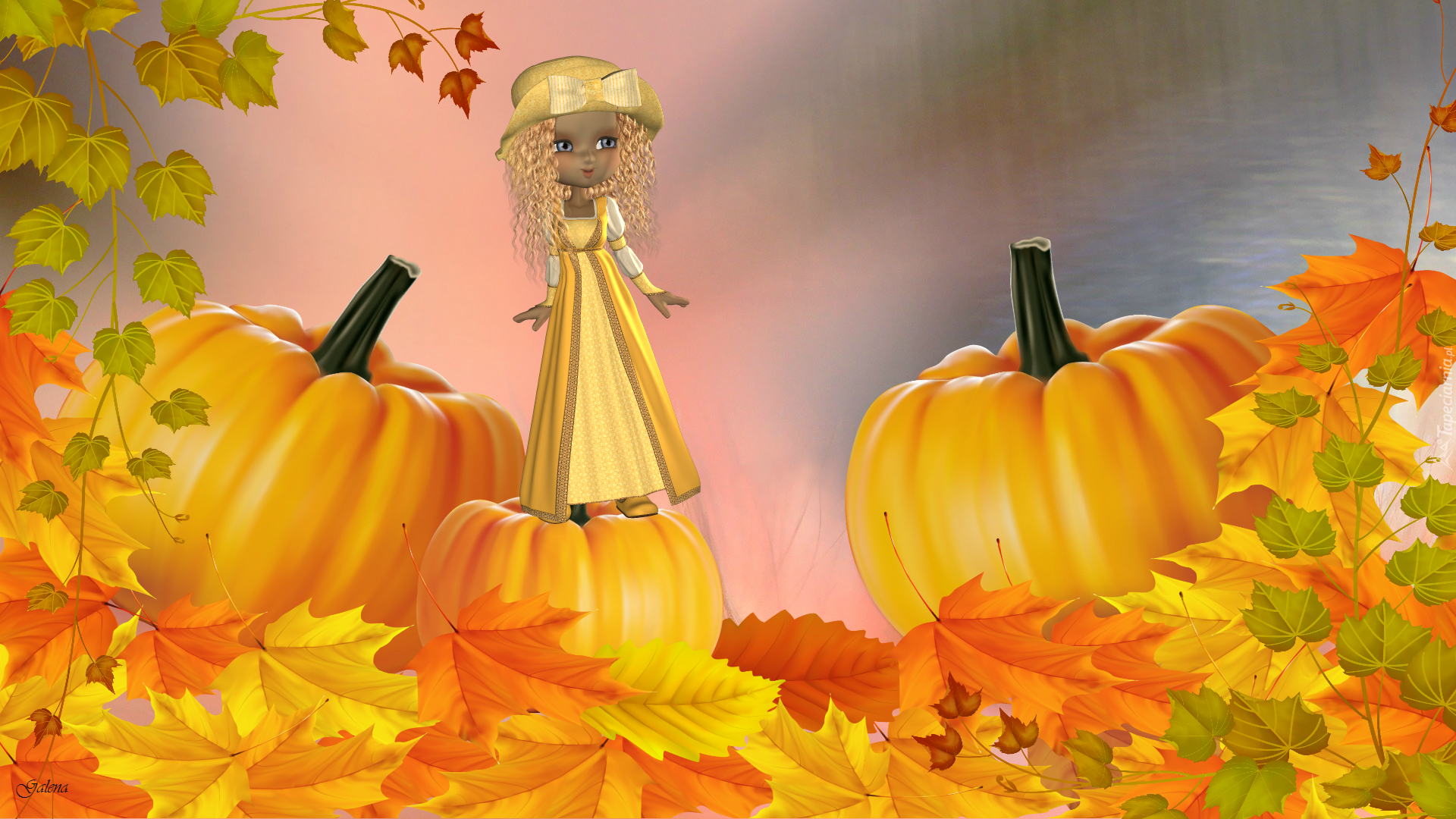 Edytor tapety: Liście, Dynie, Laleczka, Jesień, Grafika