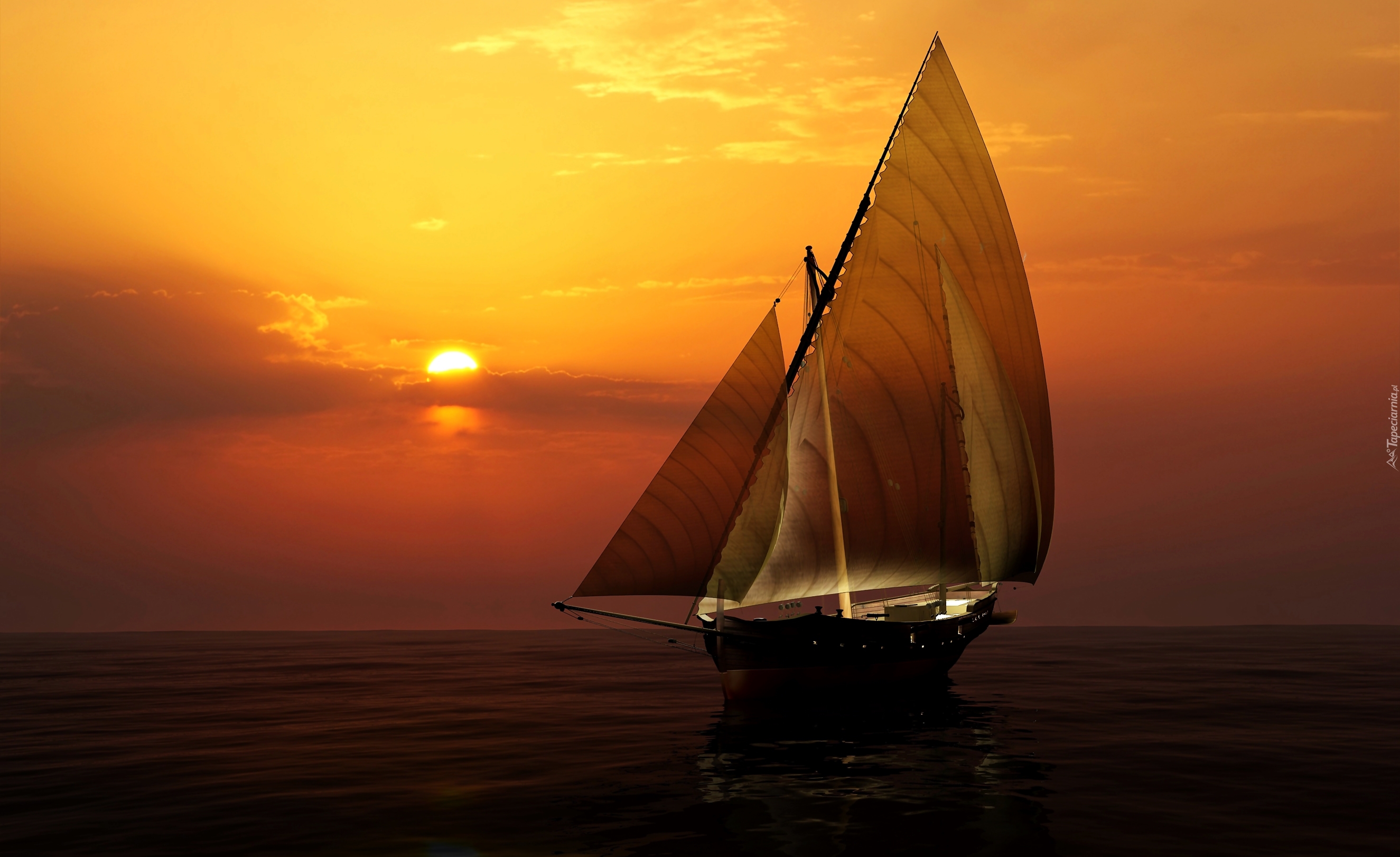 Edytor tapety: Morze, Zachód, Słońca, Żaglówka