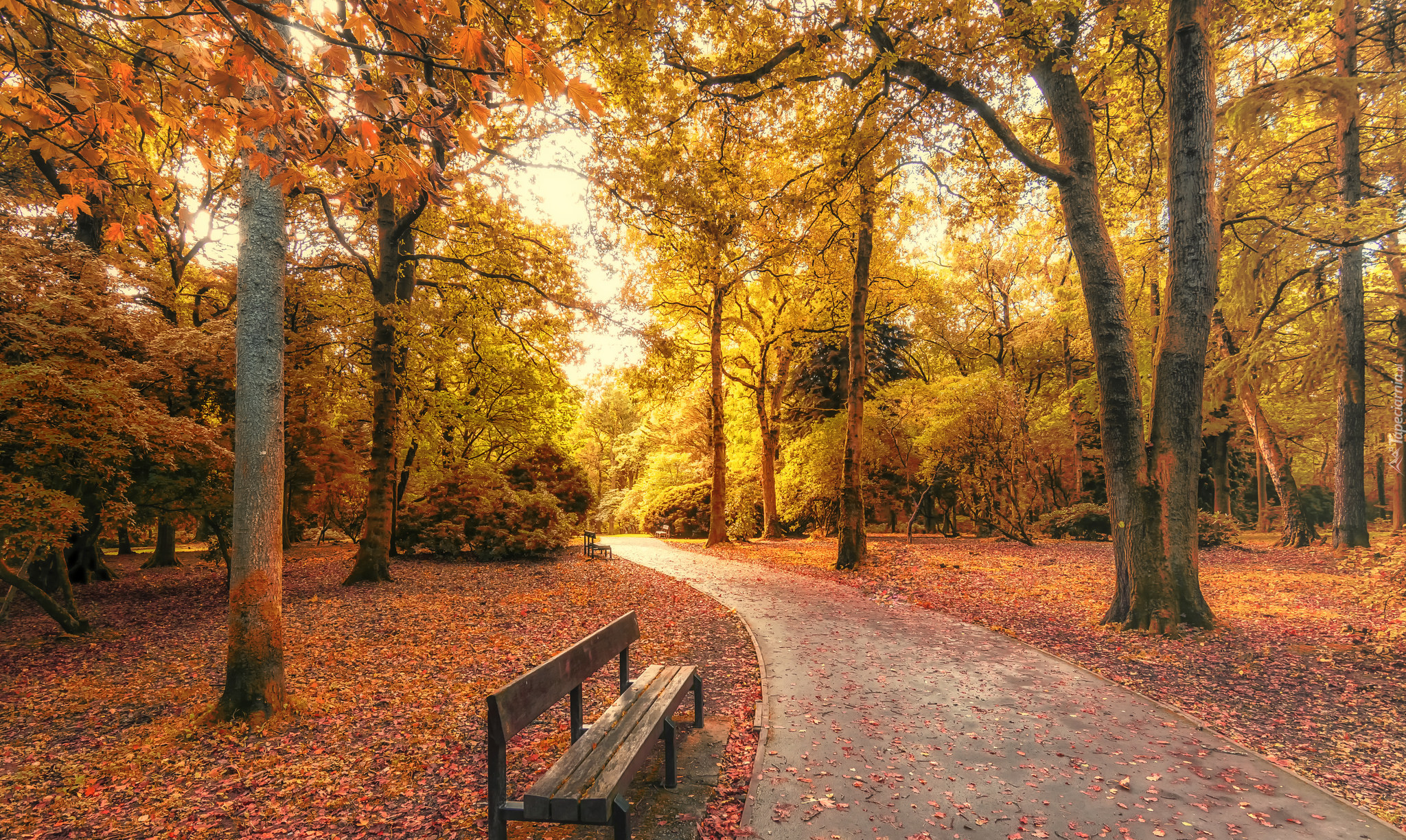 Edytor tapety: Alejka, Park, Ławki, Jesień
