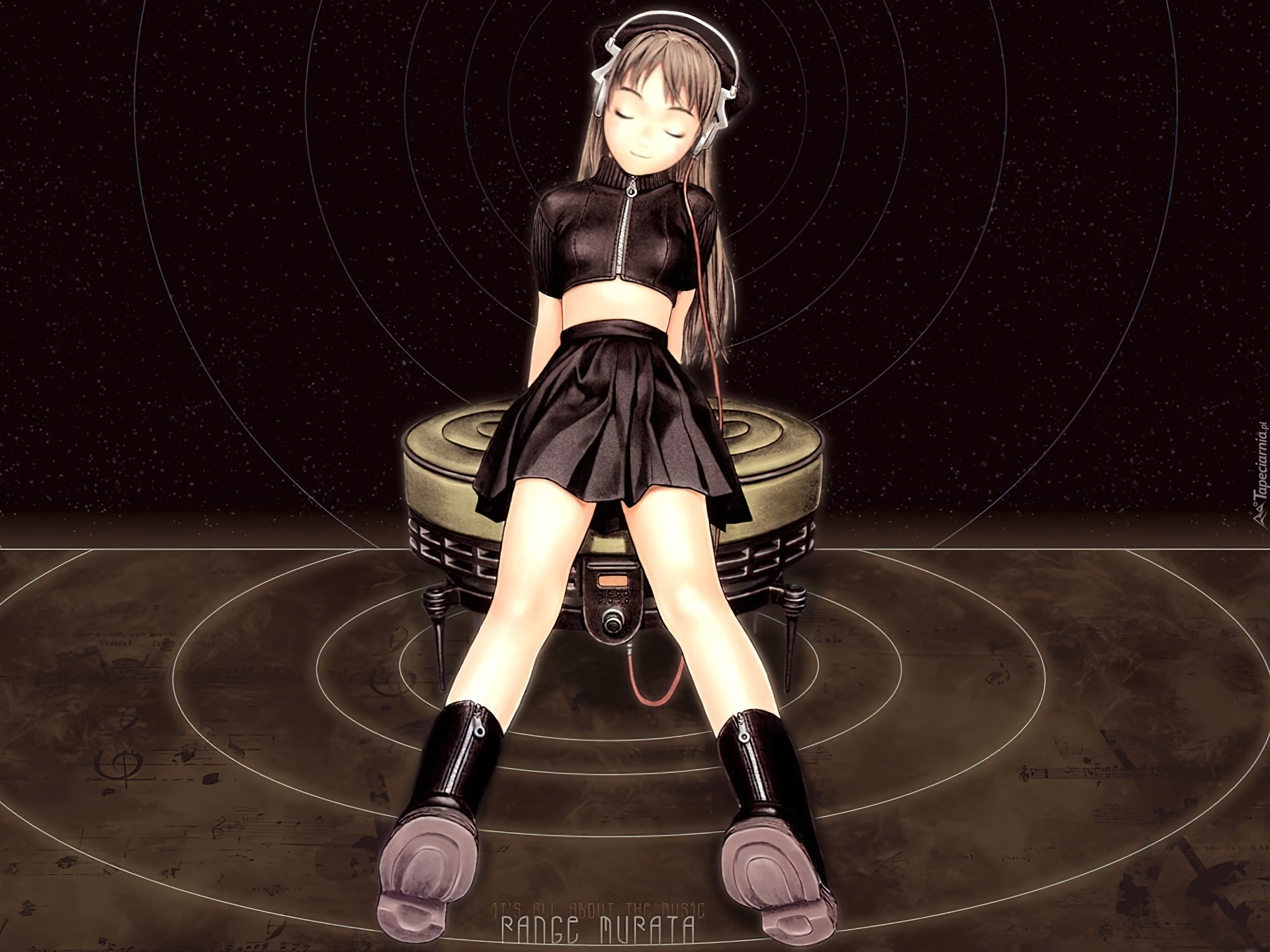 Edytor tapety: Range Murata, pufa, słuchawki, kobieta