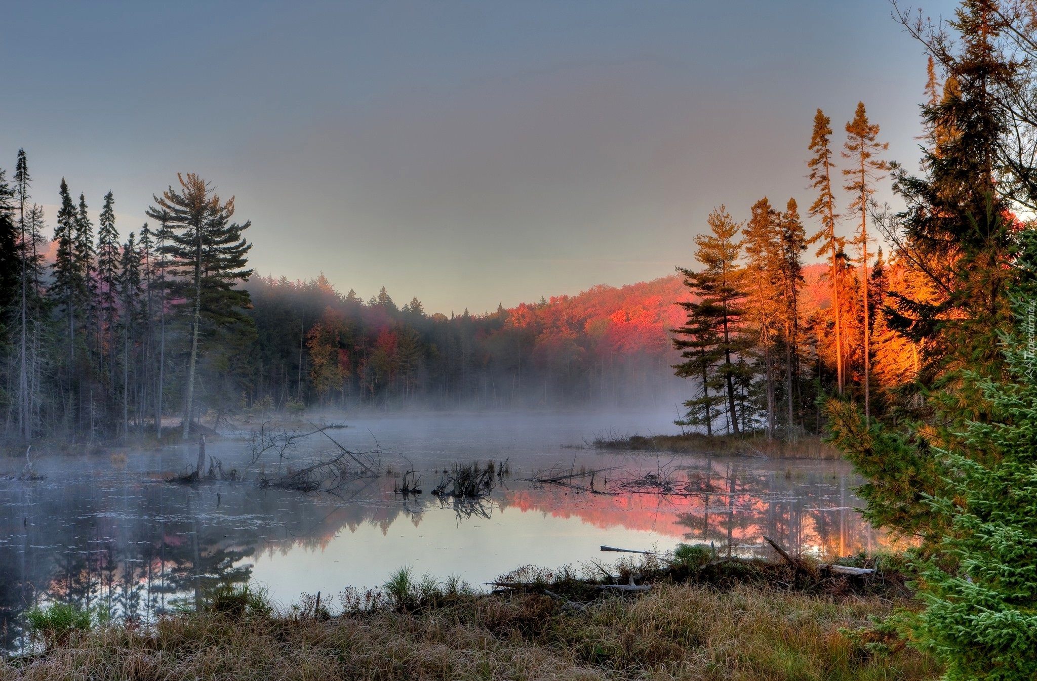 Edytor tapety: Jesień, Jezioro, Las, Mgła