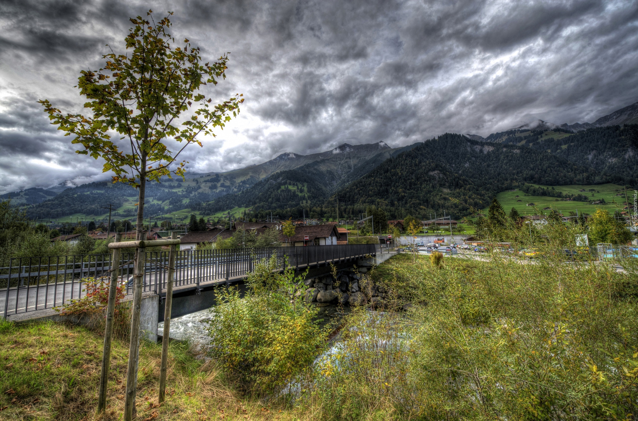 Edytor tapety: Dom, Szwajcaria, Europa, Frutigen, Most