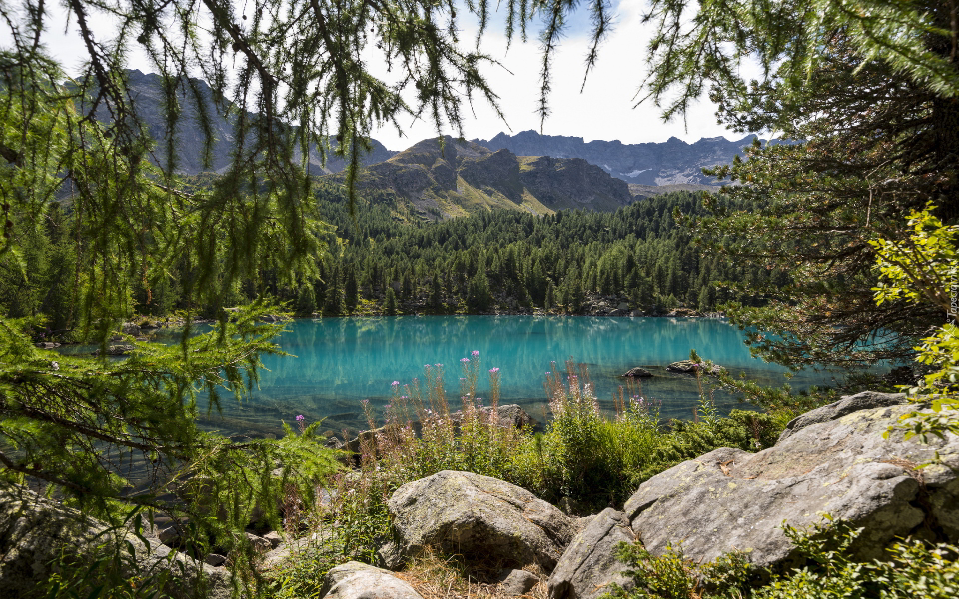 Edytor tapety: Jezioro, Kamienie, Las
