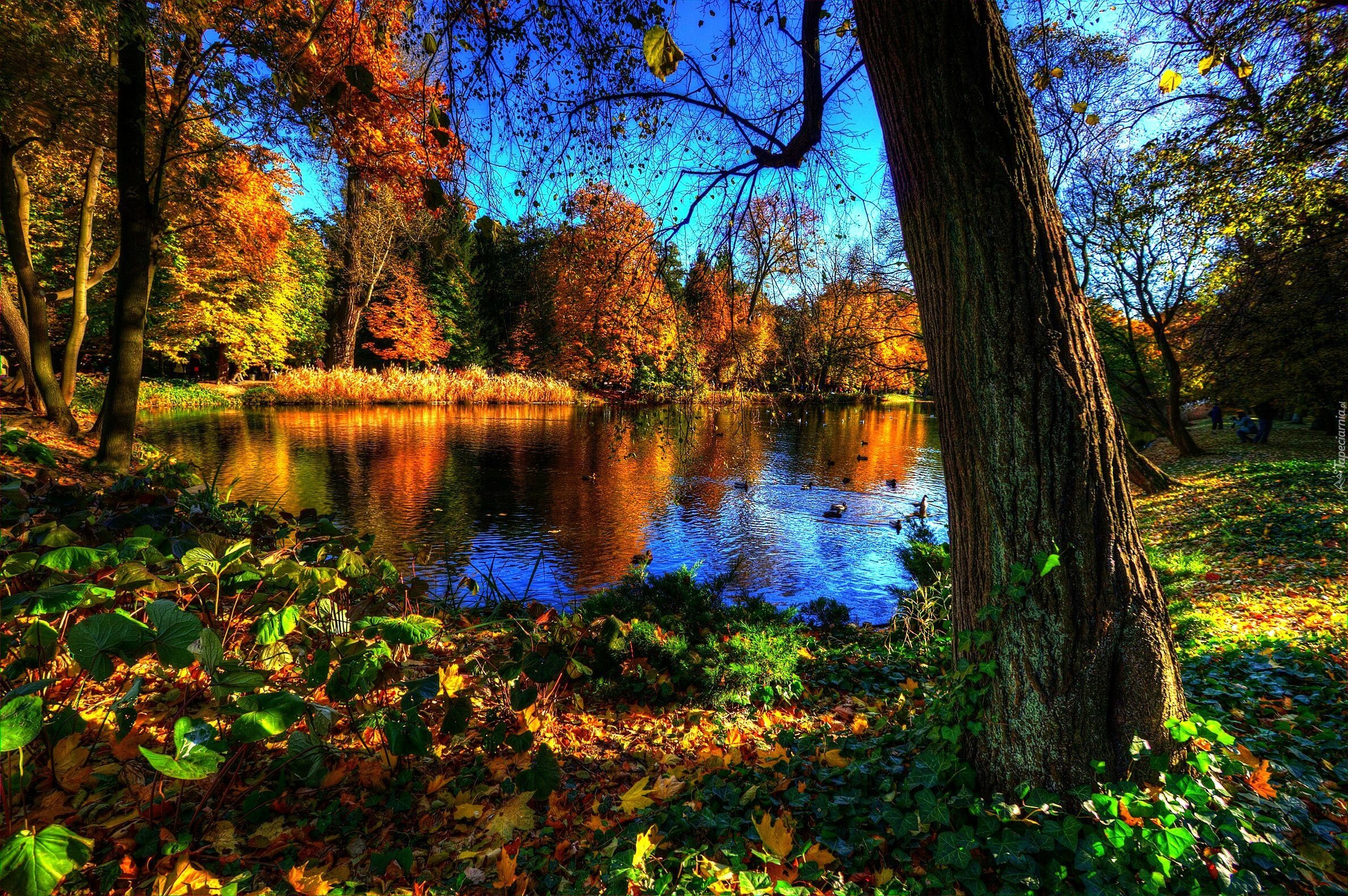 Edytor tapety: Park, Jezioro, Jesień, Kaczki